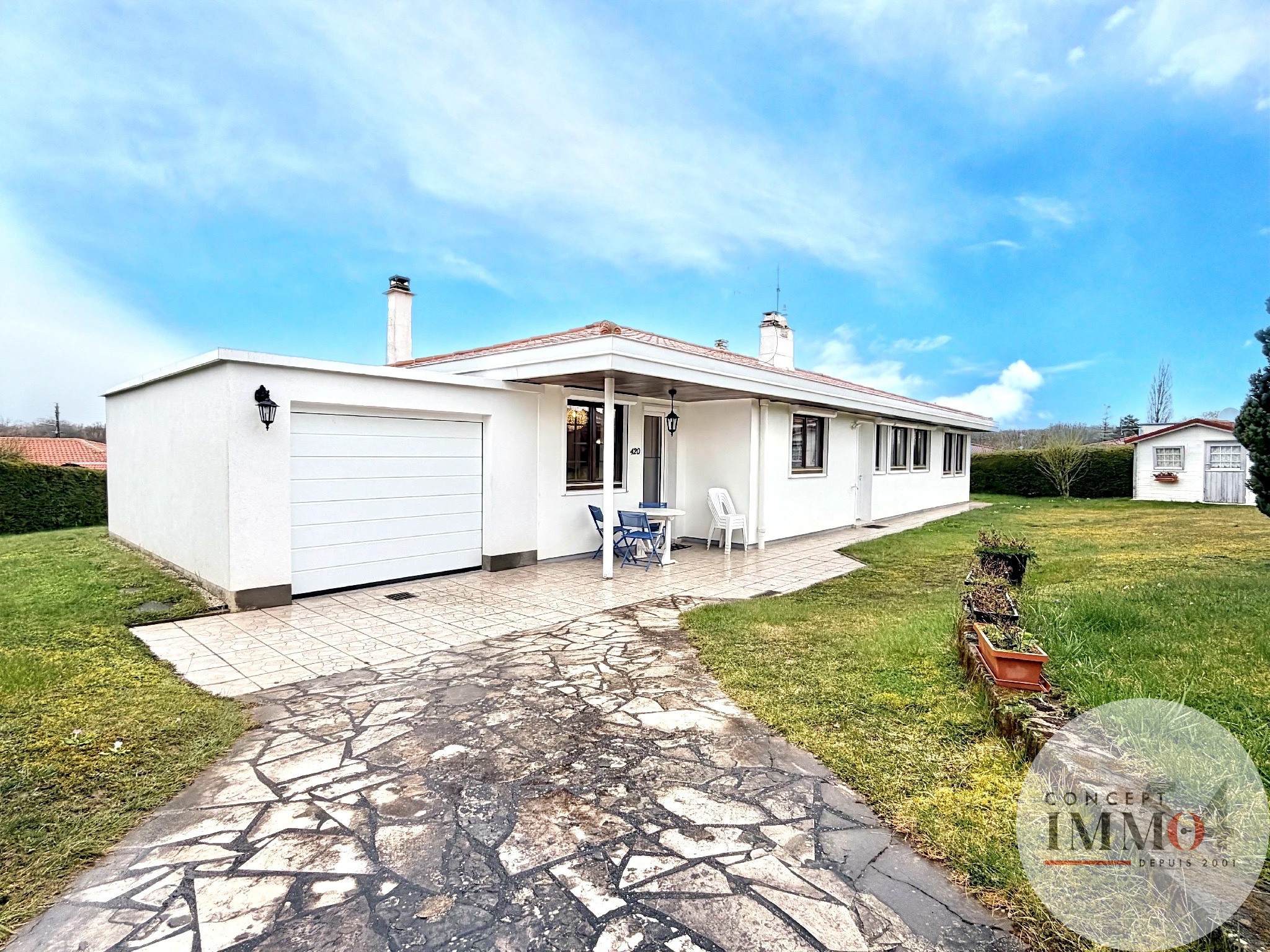 ... avec des travaux récents (toiture de 2019, porte de garage électrique de 2023, chaudière gaz à cond...