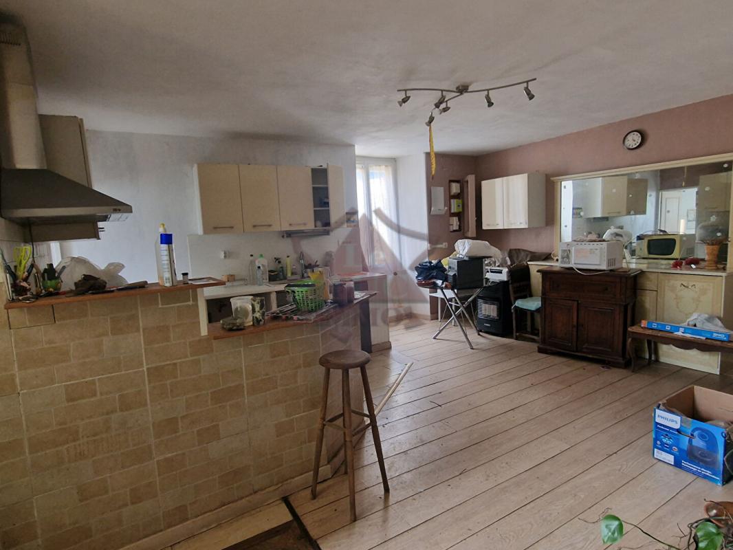 ...Au premier étage appartement à rafraichir de 60 m² avec grande pièce de vie de 40 m², chambre de...