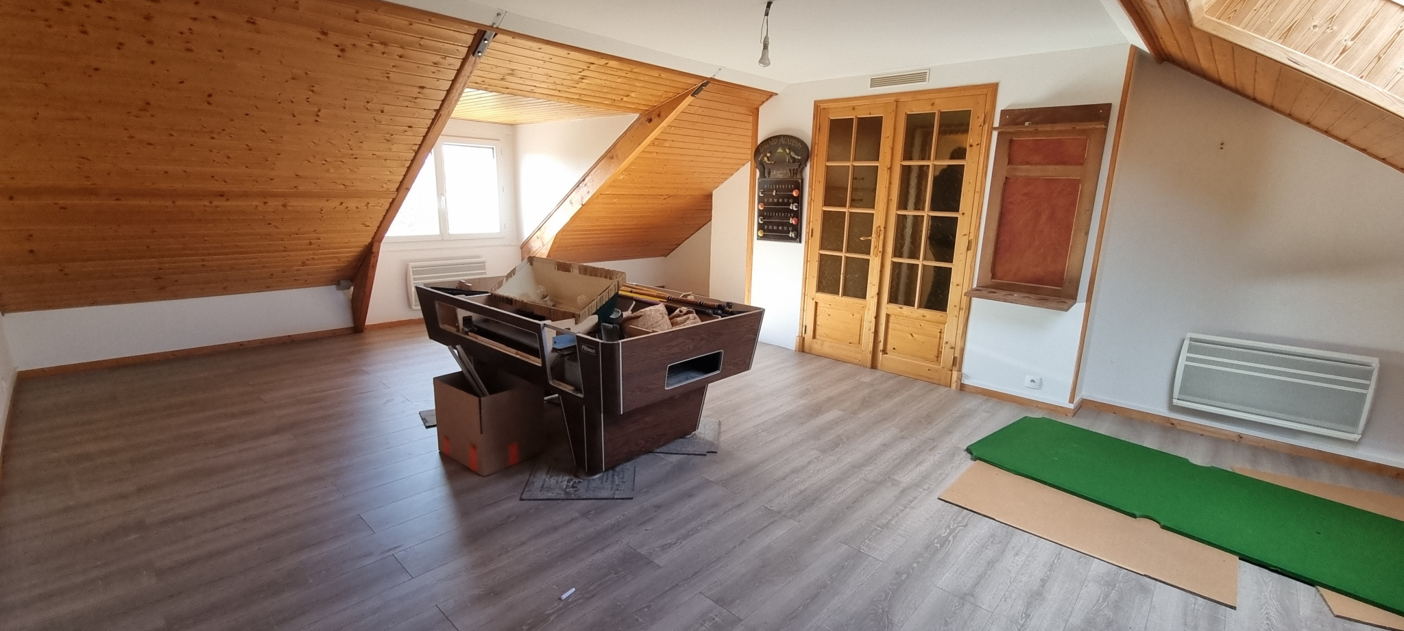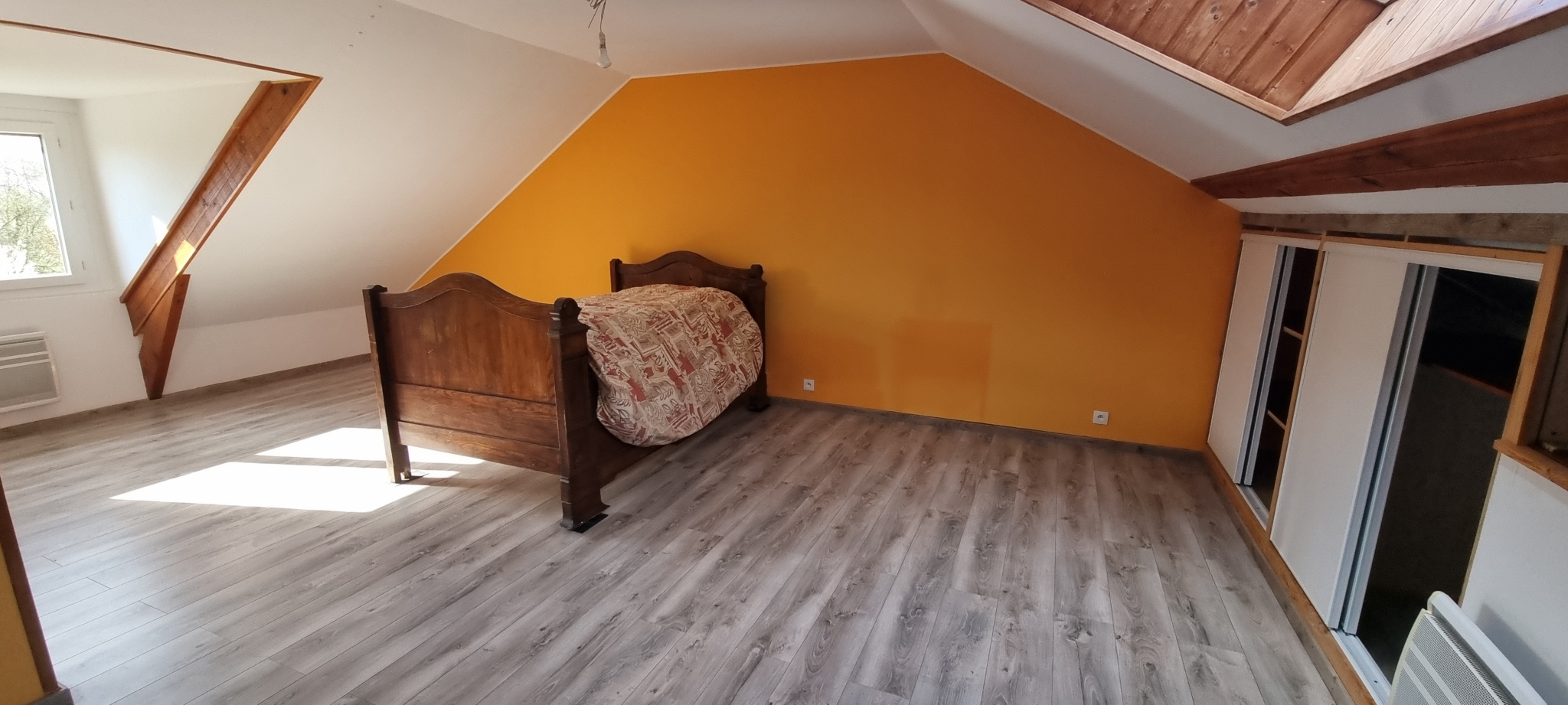...De plain-pied, elle se compose d'une grande pièce à vivre agrémentée d'un poêle à bois avec...