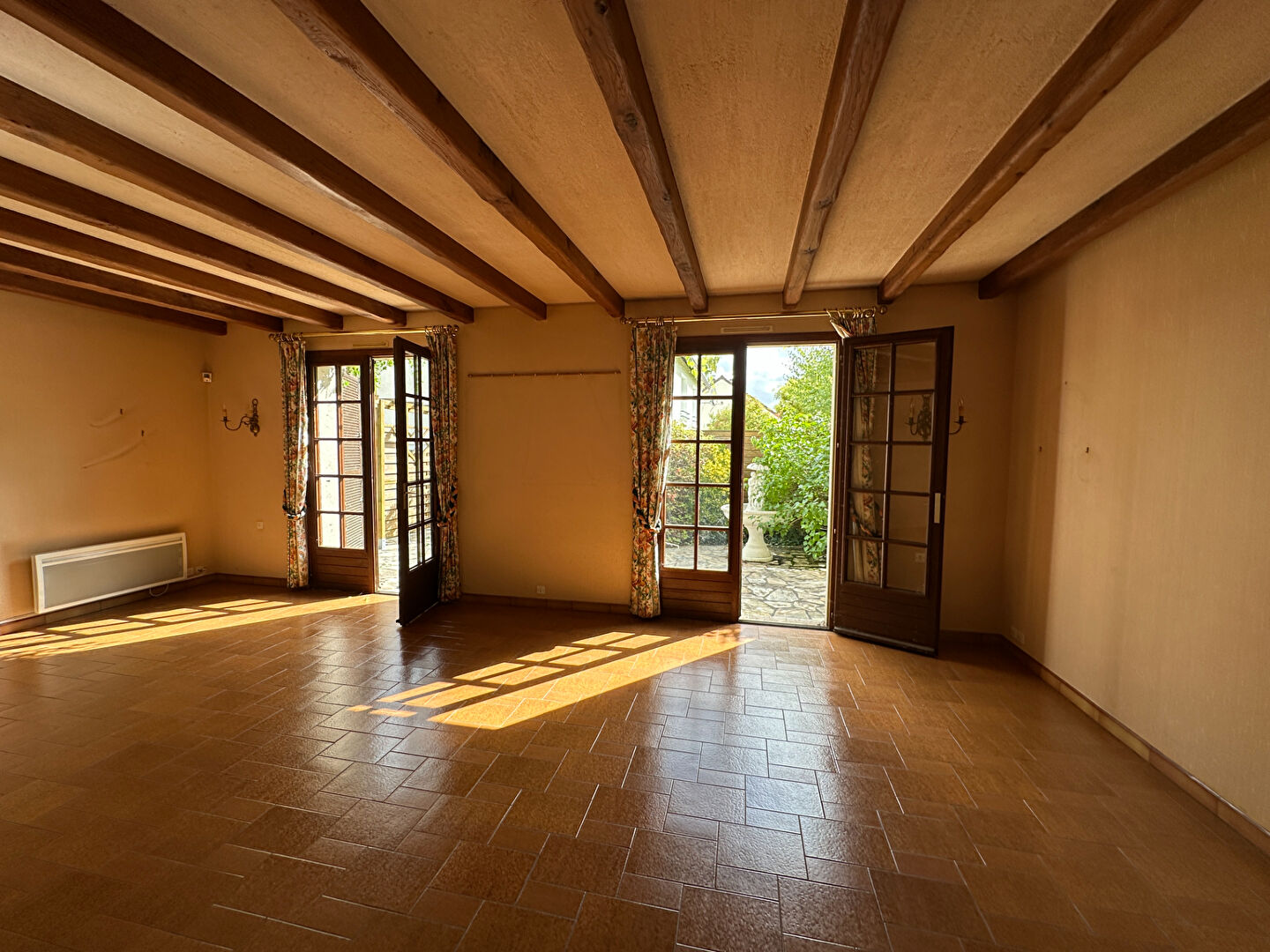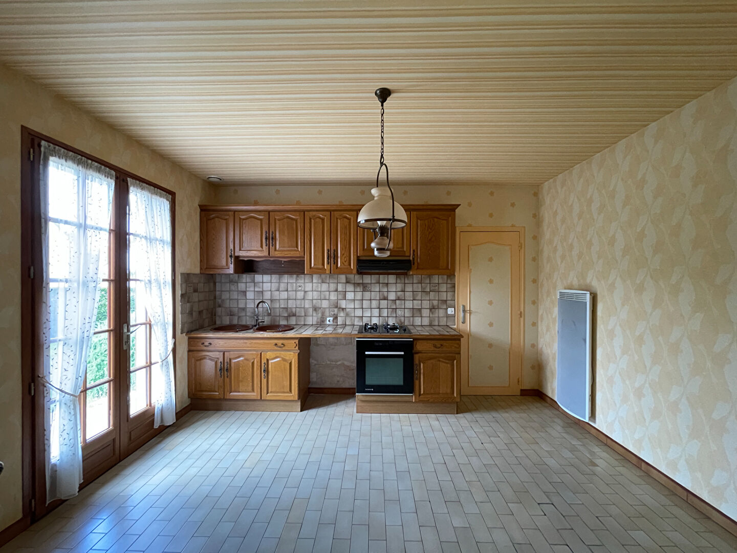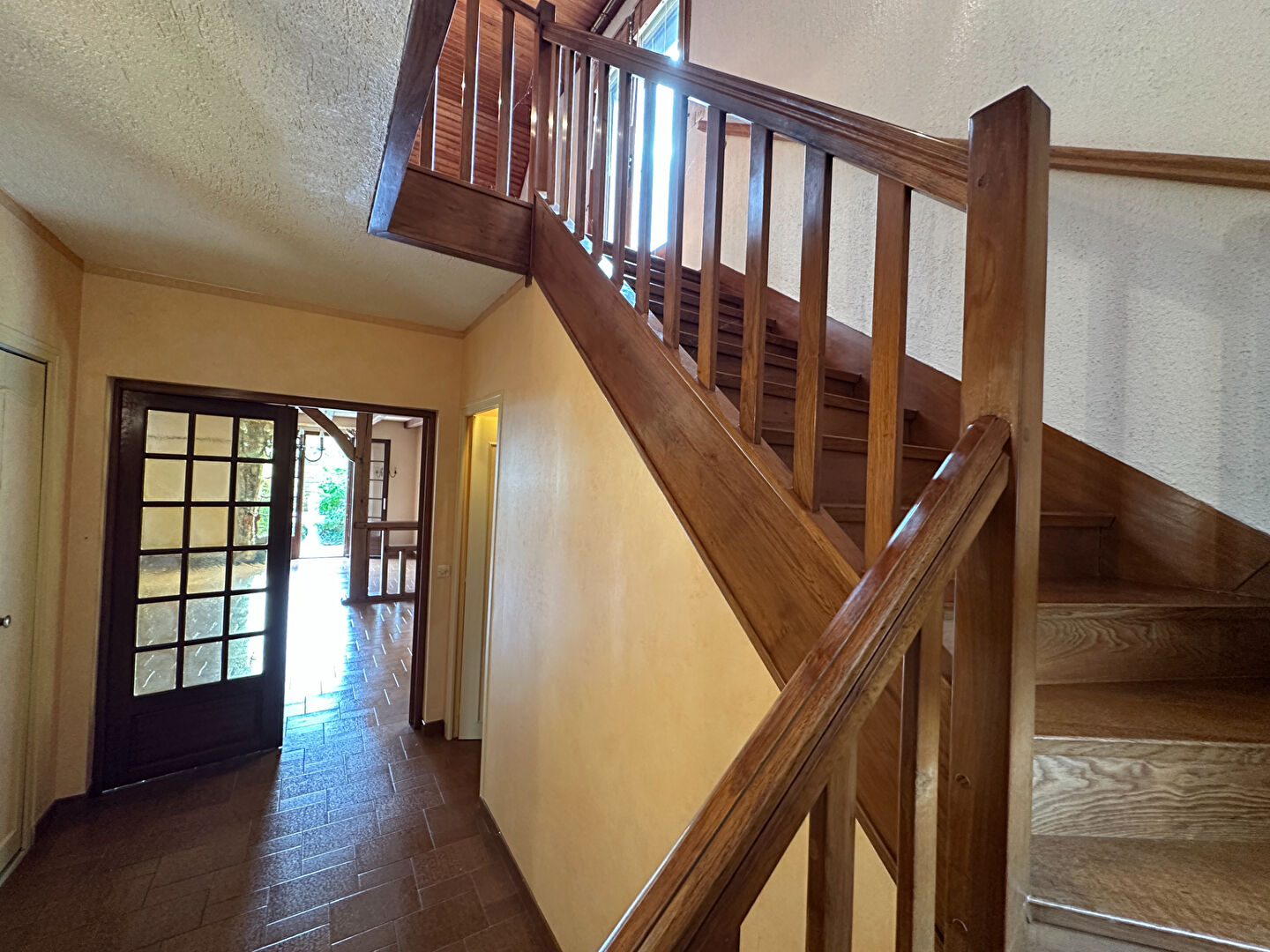 ...Entrée sur salon-séjour avec cheminée à insert, cuisine, une véranda climatisée avec grandes...