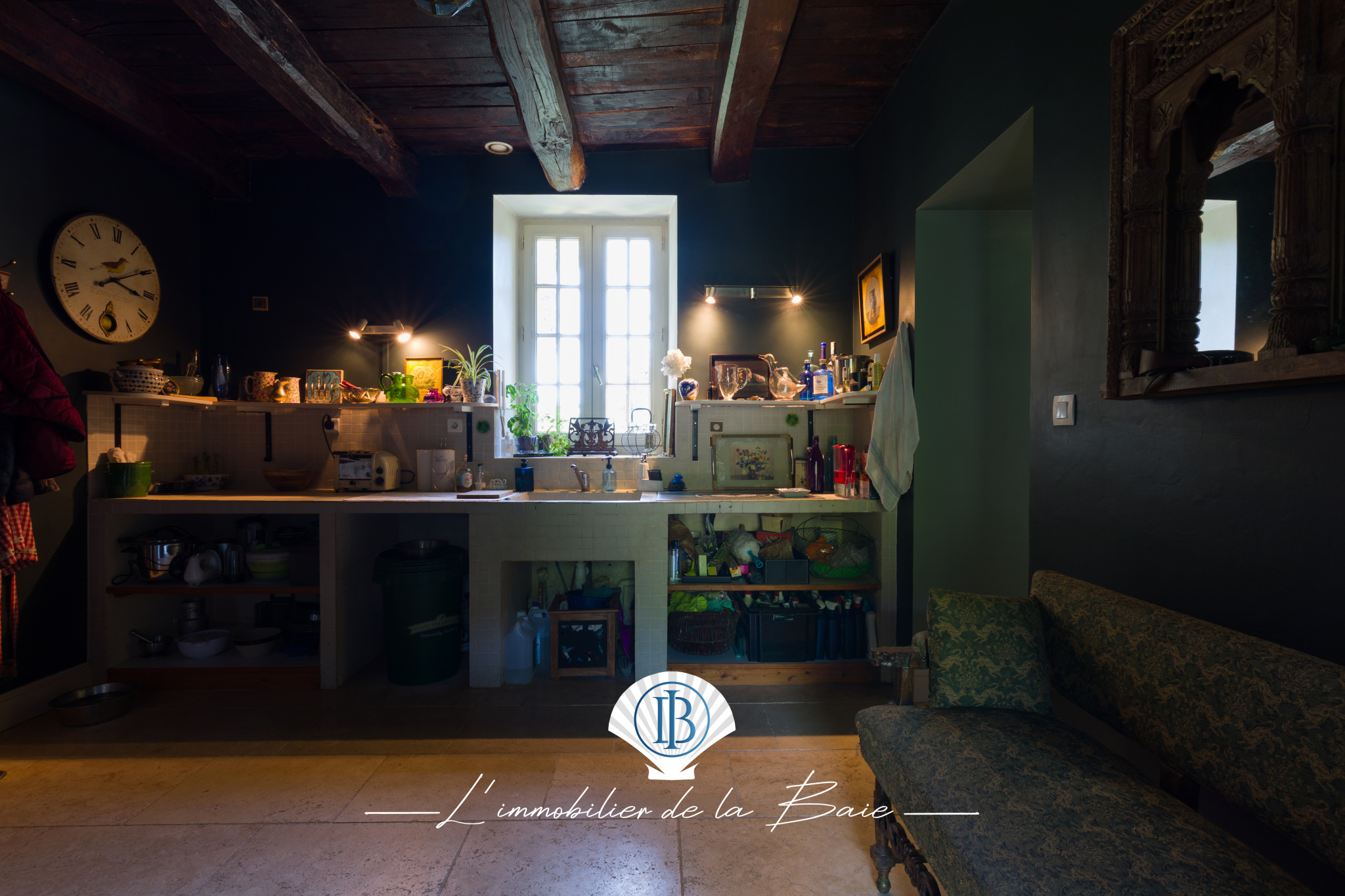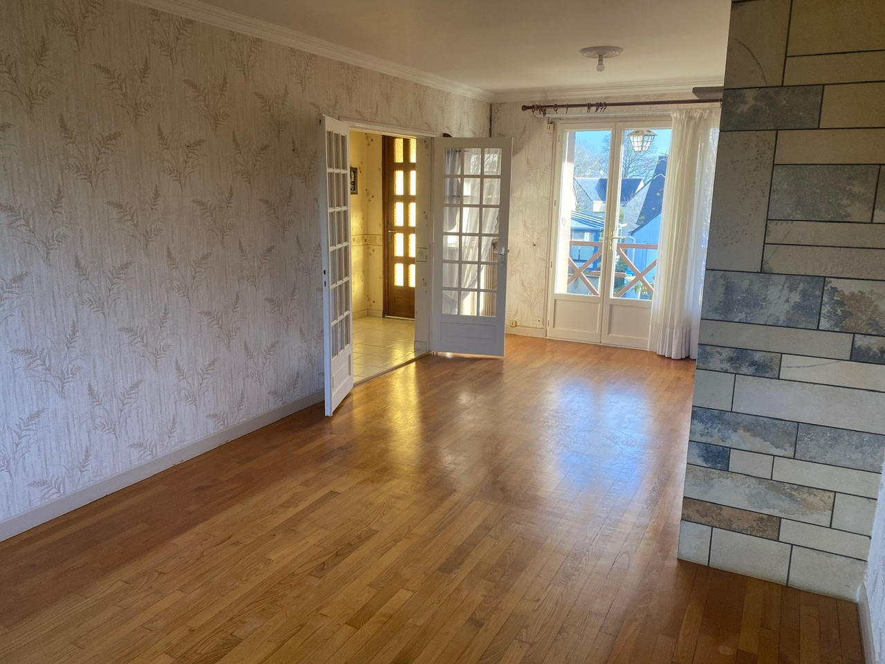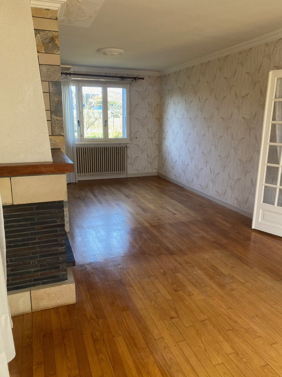 ...Entrée, salon/séjour avec cheminée en pierre équipé d'un foyer fermé, cuisine séparée aménagée et...