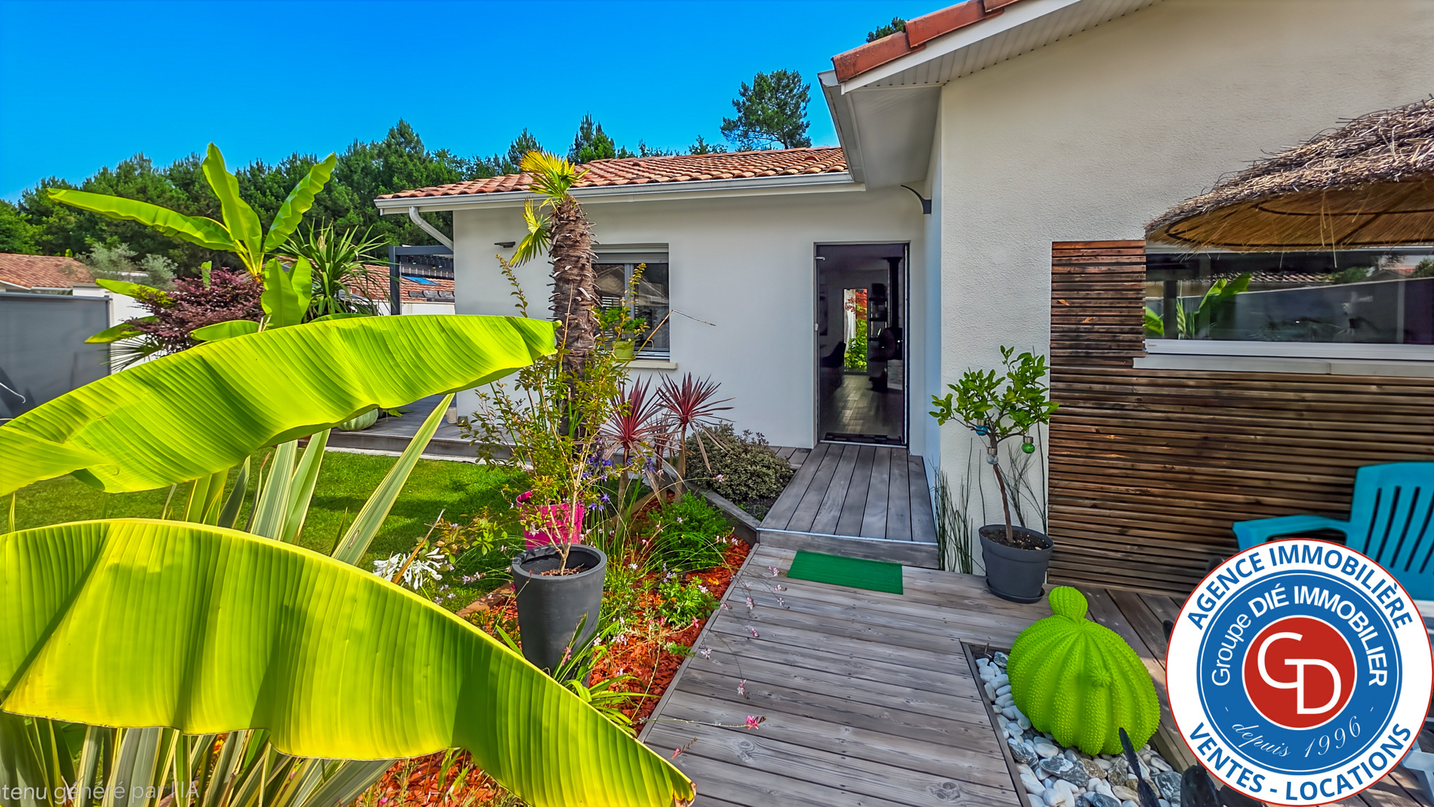 ... l'entrée de Mios, situation pratique pour rejoindre Arcachon (à 20 minutes) ou Bordeaux par l'autor...