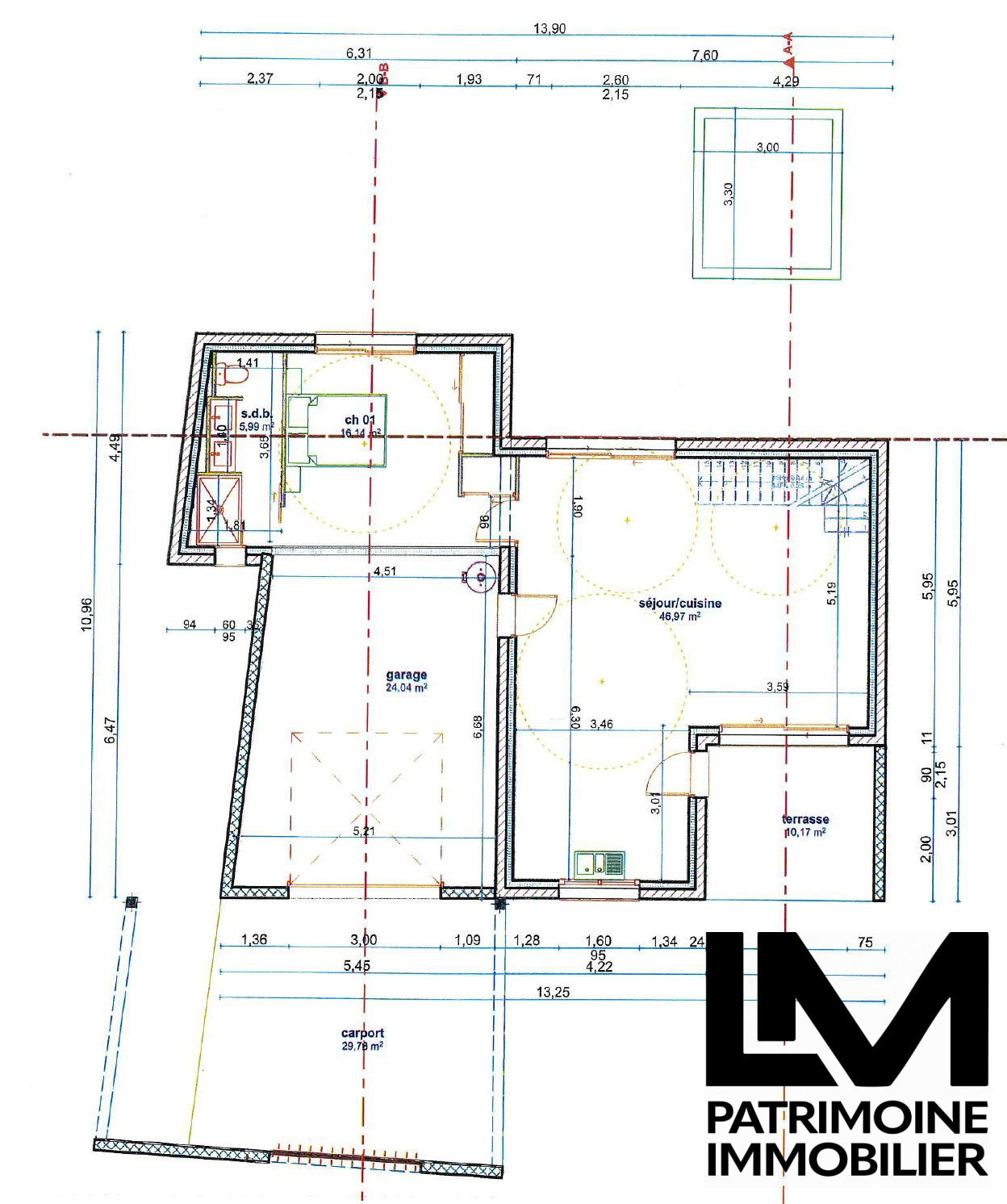 ...Sur une parcelle de plus de 309m2, elle comprendra également un garage de 24m2 environ ainsi...