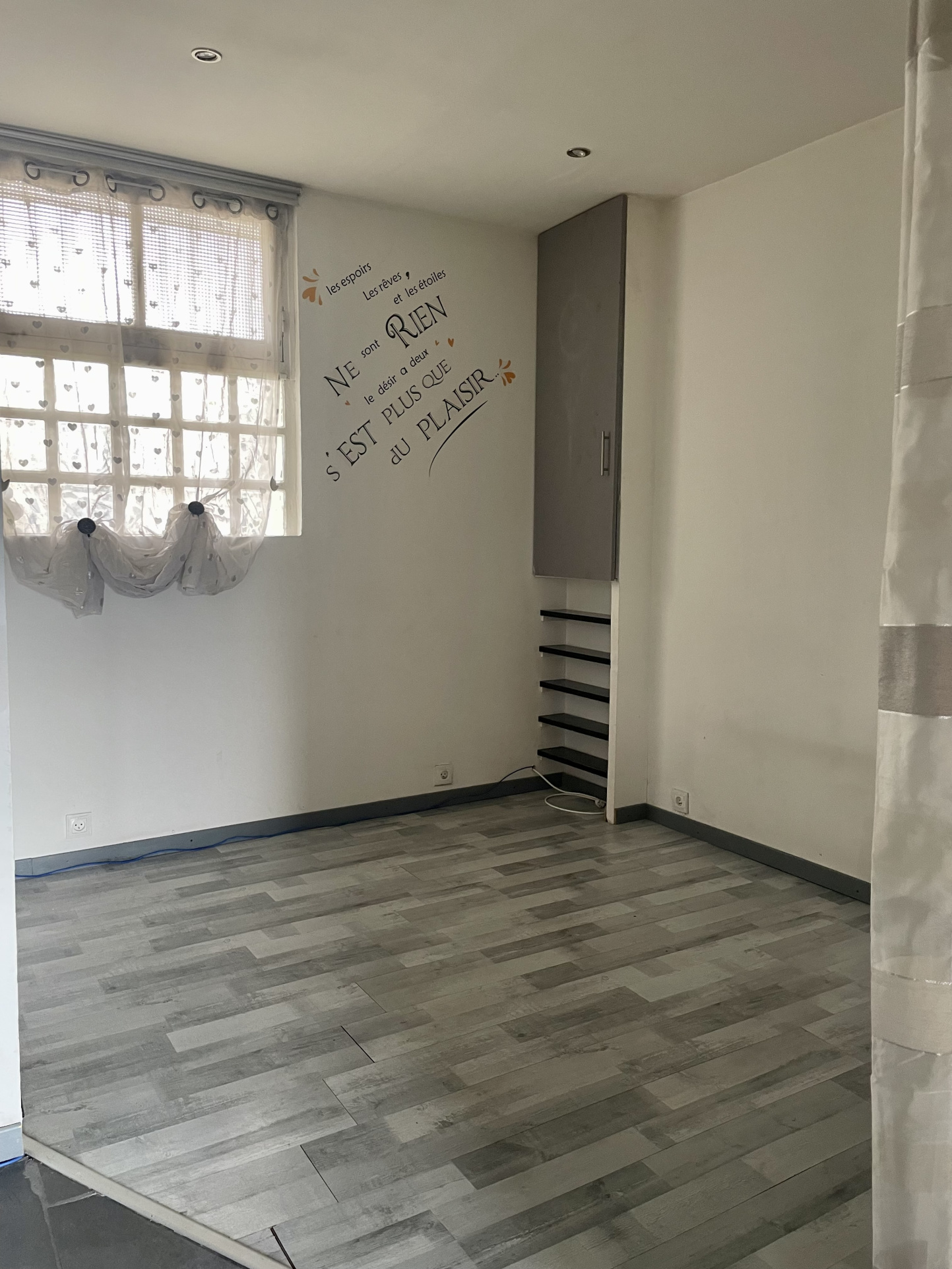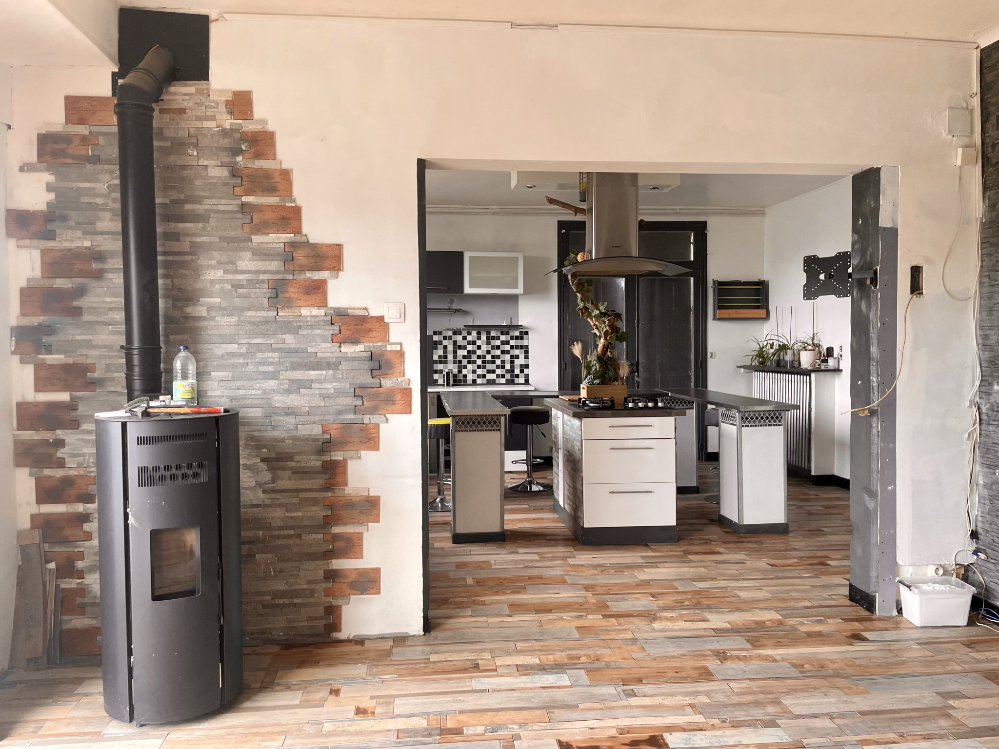 ...En rdc, elle se compose d'une cuisine, une pièce de vie, une chambre, un toilette...