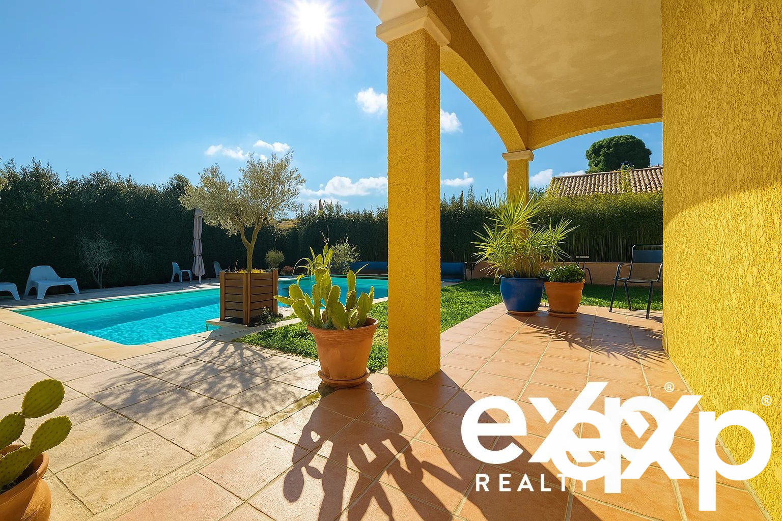 ...Joli jardin arboré au calme de 720 m2 sans vis à vis direct espace piscine protégé...