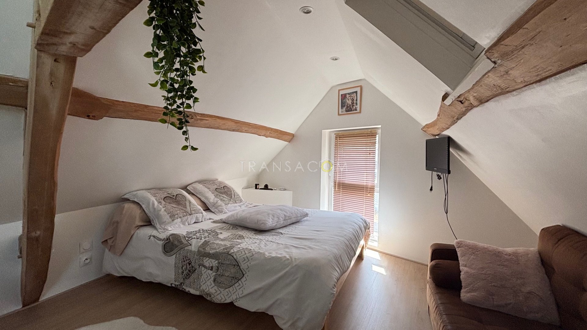 ...Elle se compose d'une pièce à vivre de 42m2 avec son poele à bois et sa cuisine aménagée et...