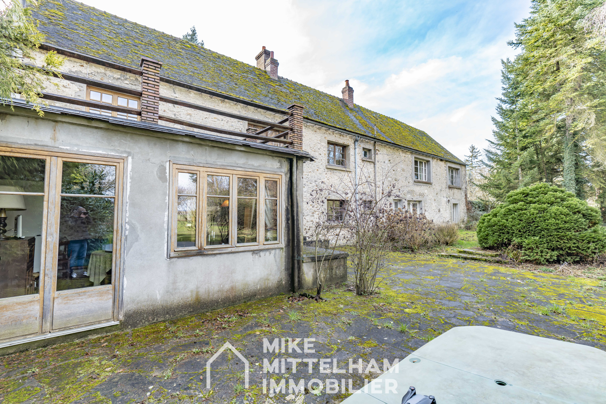 ...Au RDC: une entrée (9m²) avec placard, un wc indépendant, un séjour double (40m²) avec cheminée...
