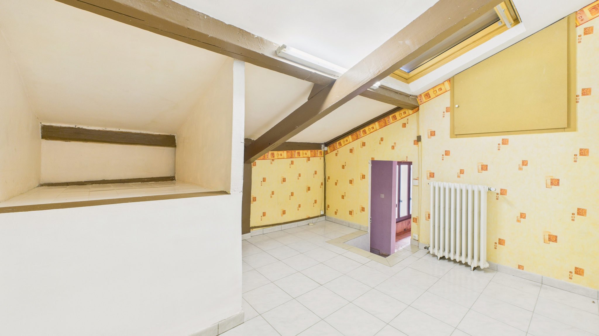 ...Dès l'entrée, l'espace s'ouvre sur une salle de bains moderne avec douche, baignoire et WC...