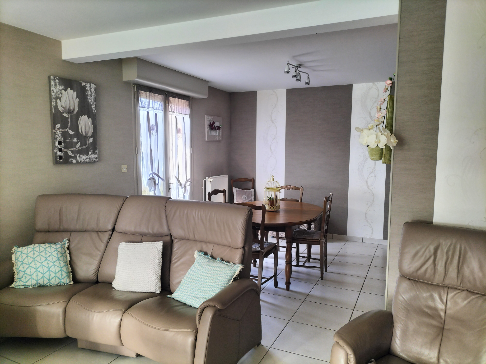 ... : entrée, cuisine équipée, séjour - salon, chambre, salle de douche et wc. A l'étage : palier deser...