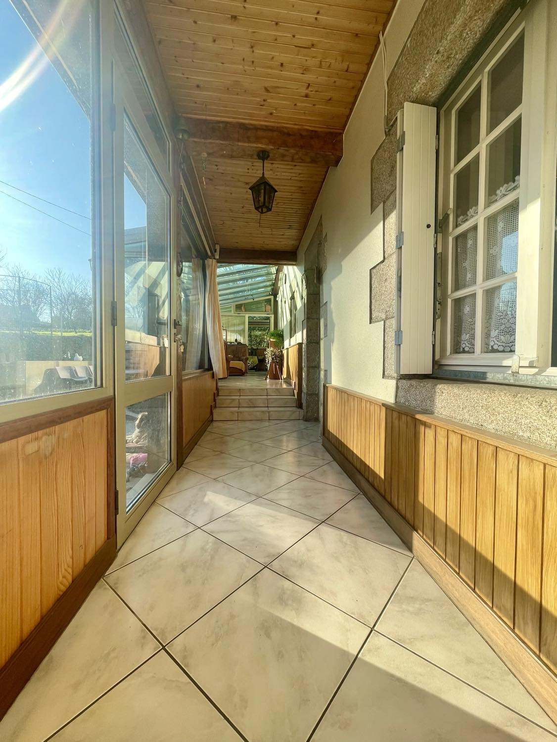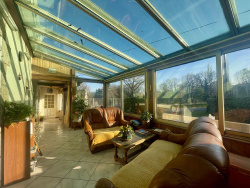... spacieuse véranda isolée et très bien exposée, faisant office d'entrée et de salon et desservant un...