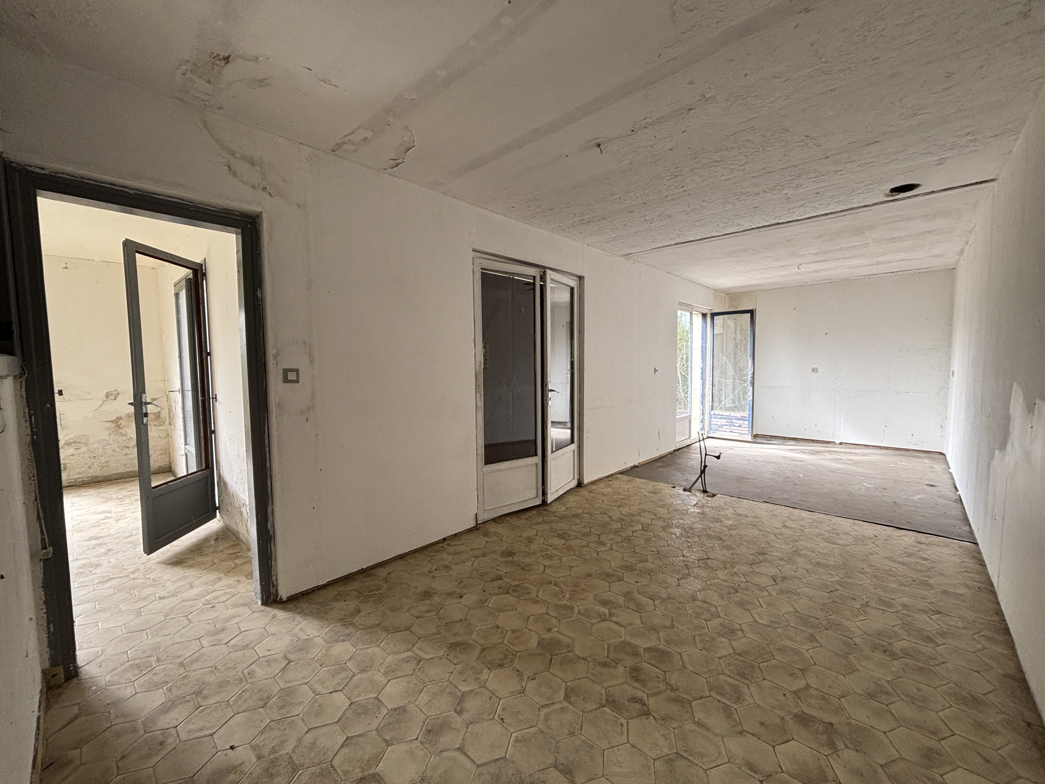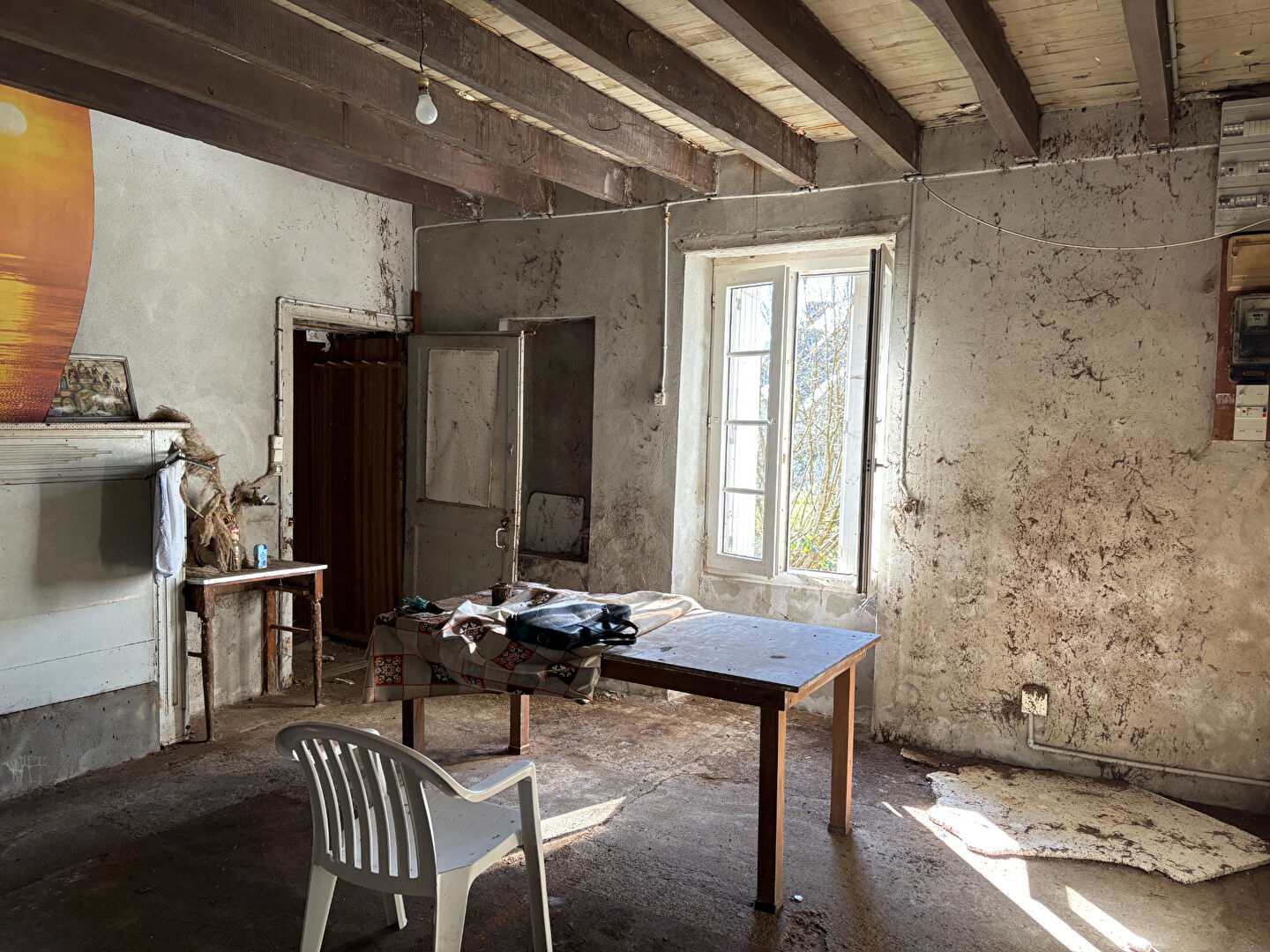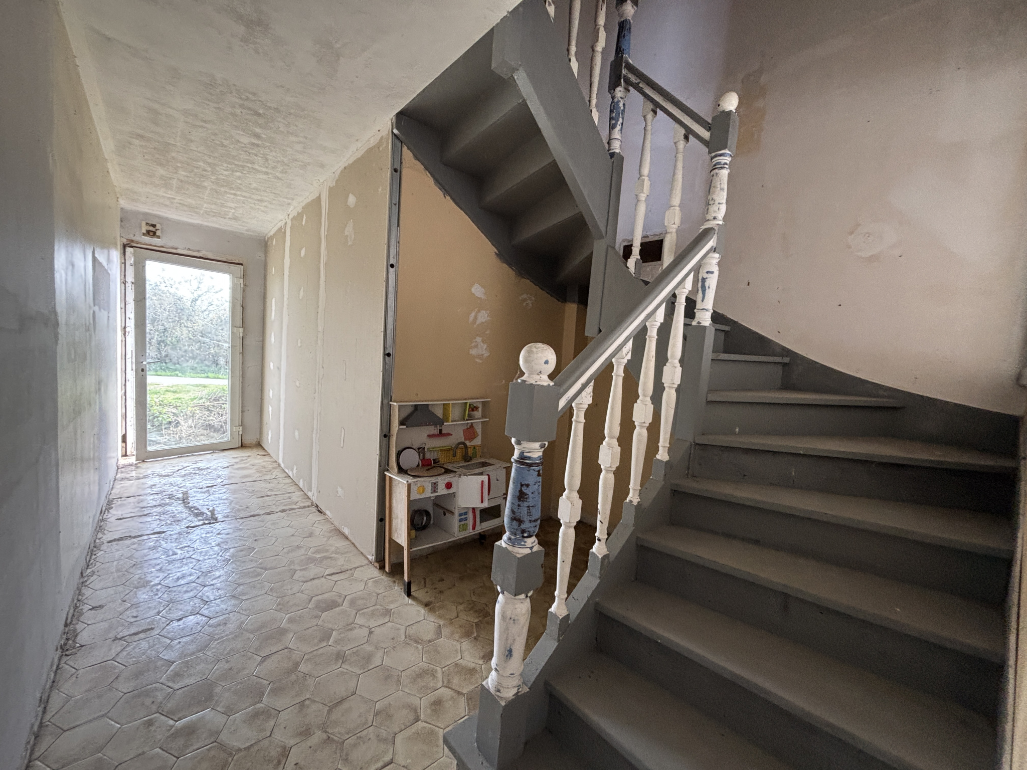 ...Au rez-de-chaussée : une entrée, une pièce de vie avec insert, une seconde pièce, un couloir...