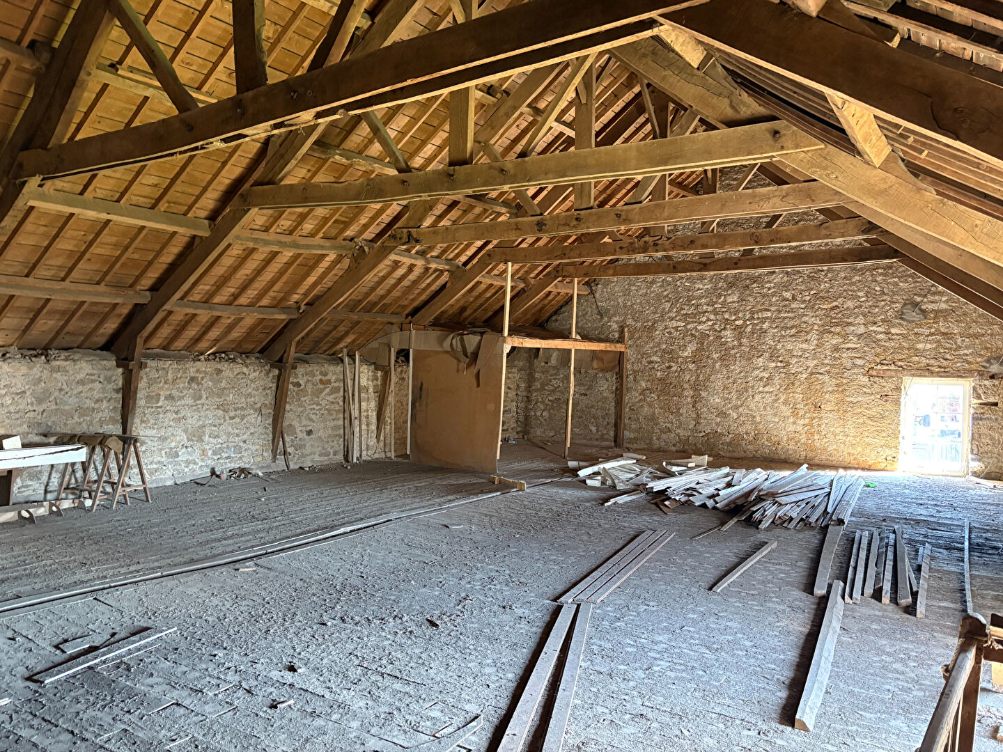 ...Elle comprenant : - au rez-de-chaussée une grande pièce de vie de 50 m² avec cuisine ouverte...