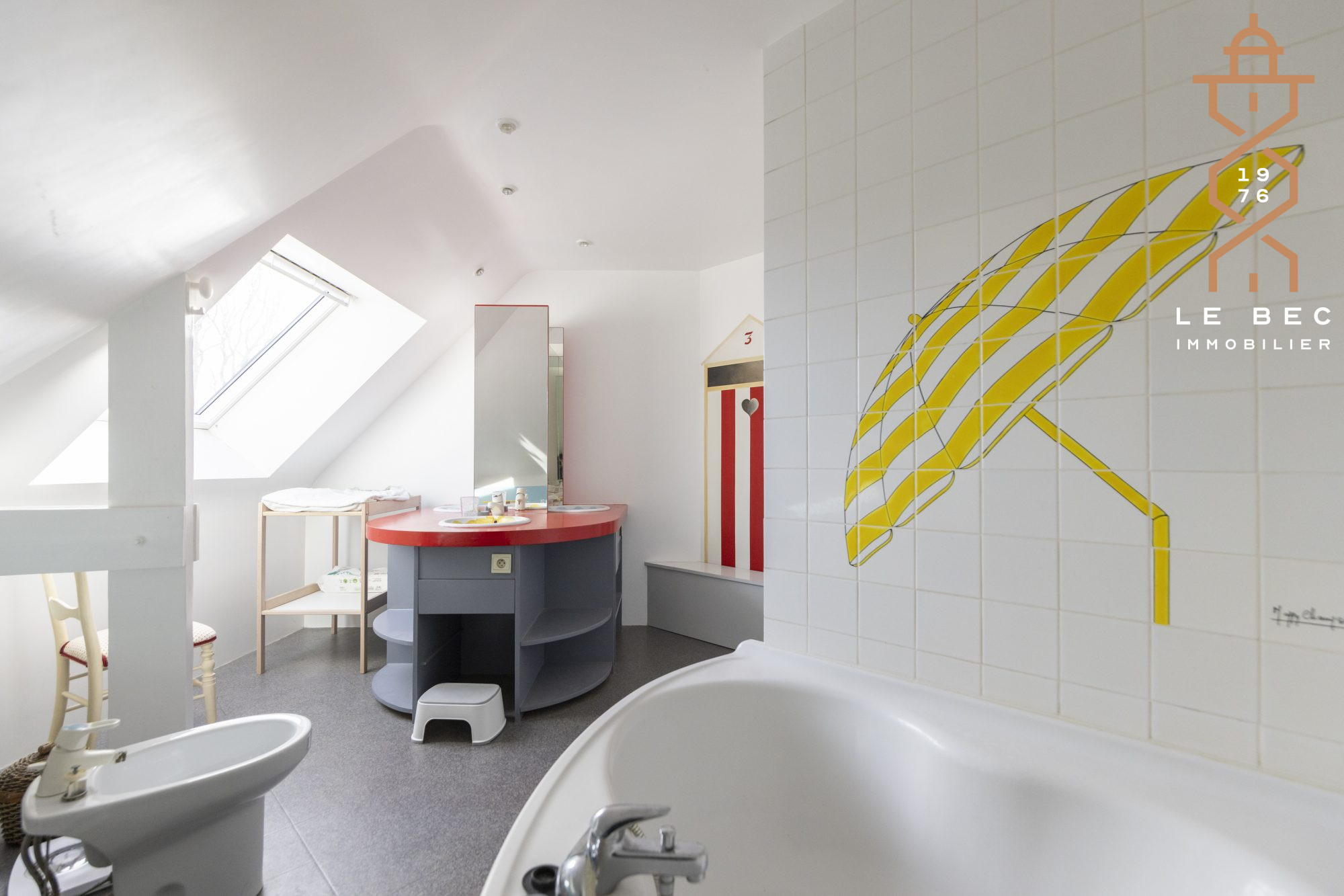 ...Au rez-de-chaussée, vous profiterez d'une vaste pièce de vie très lumineuse de 50 m² avec poêle à...