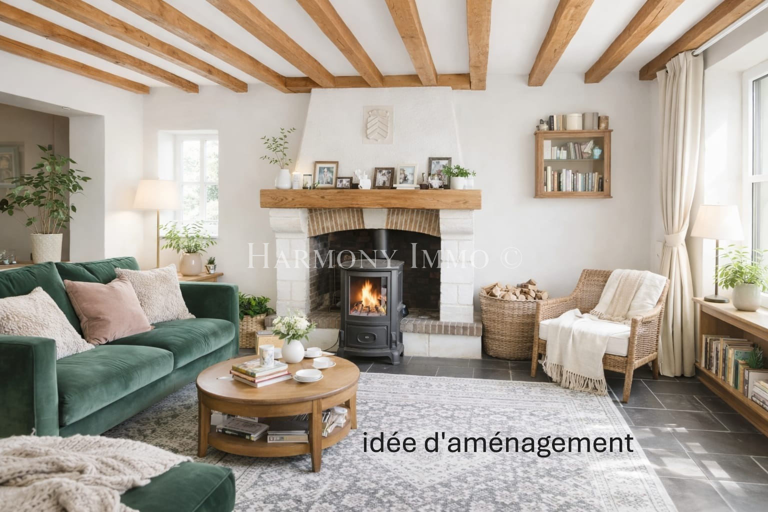 ...Elle offre au rez de chaussée:cuisine,salon avec poele à bois ,séjour,buanderie,wc,et cave...