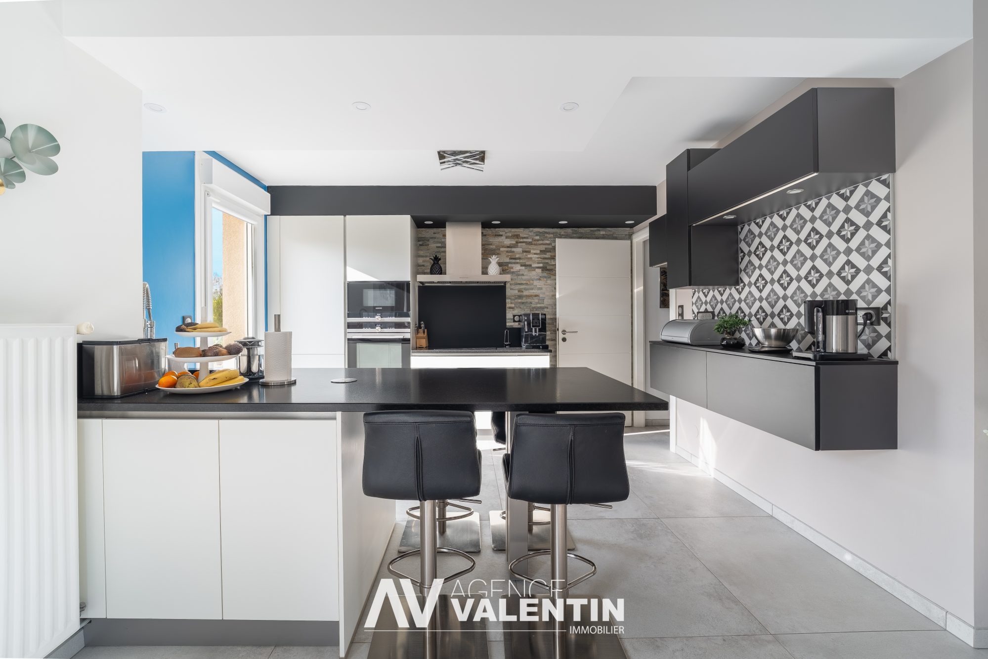 ... : une entrée, une cuisine équipée ouverte sur une pièce à vivre avec coin salon et espace salle à m...