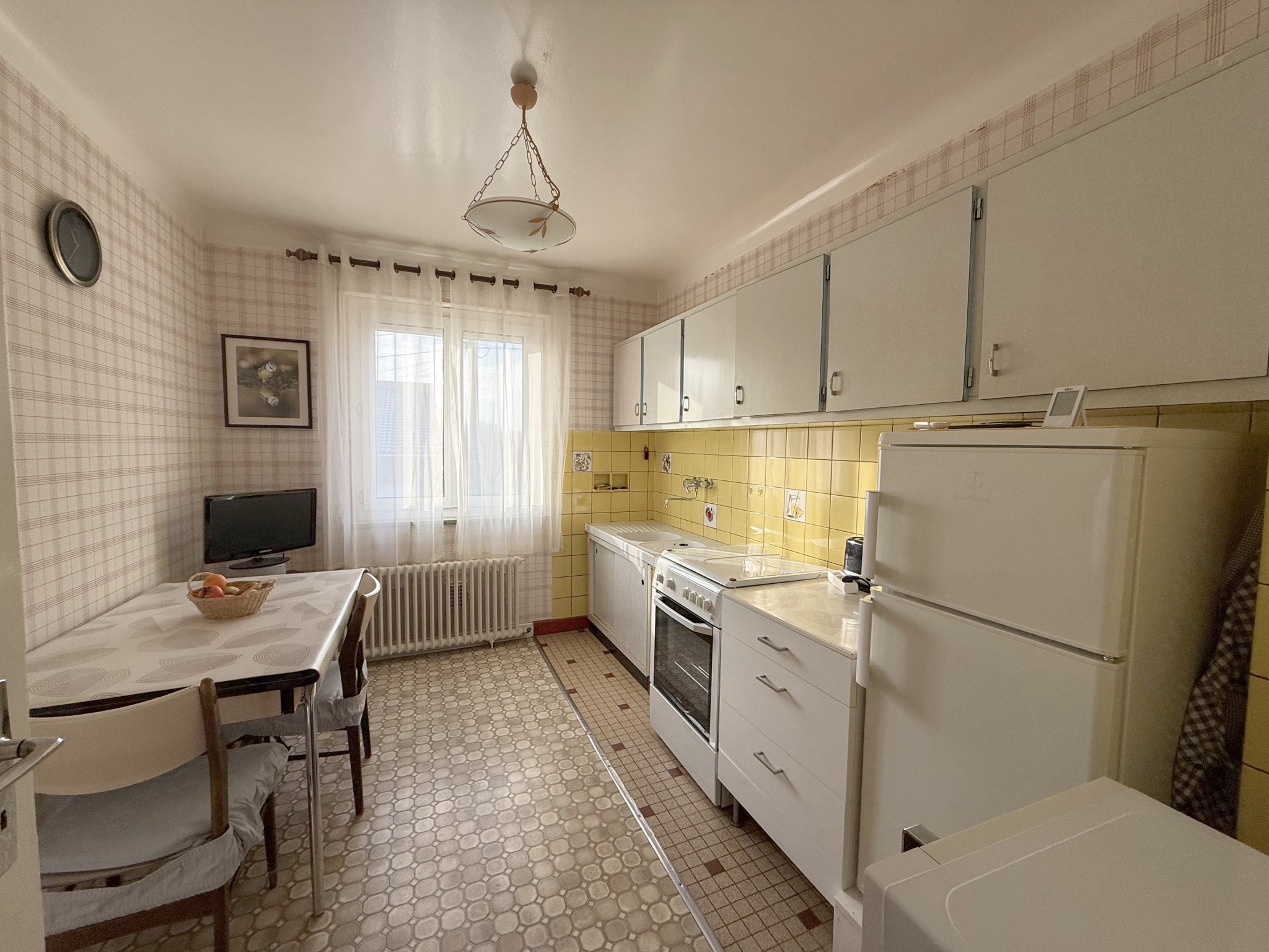 ... un salon-séjour lumineux, une cuisine ouverte, ainsi qu'un accès à une véranda donnant sur le jardi...