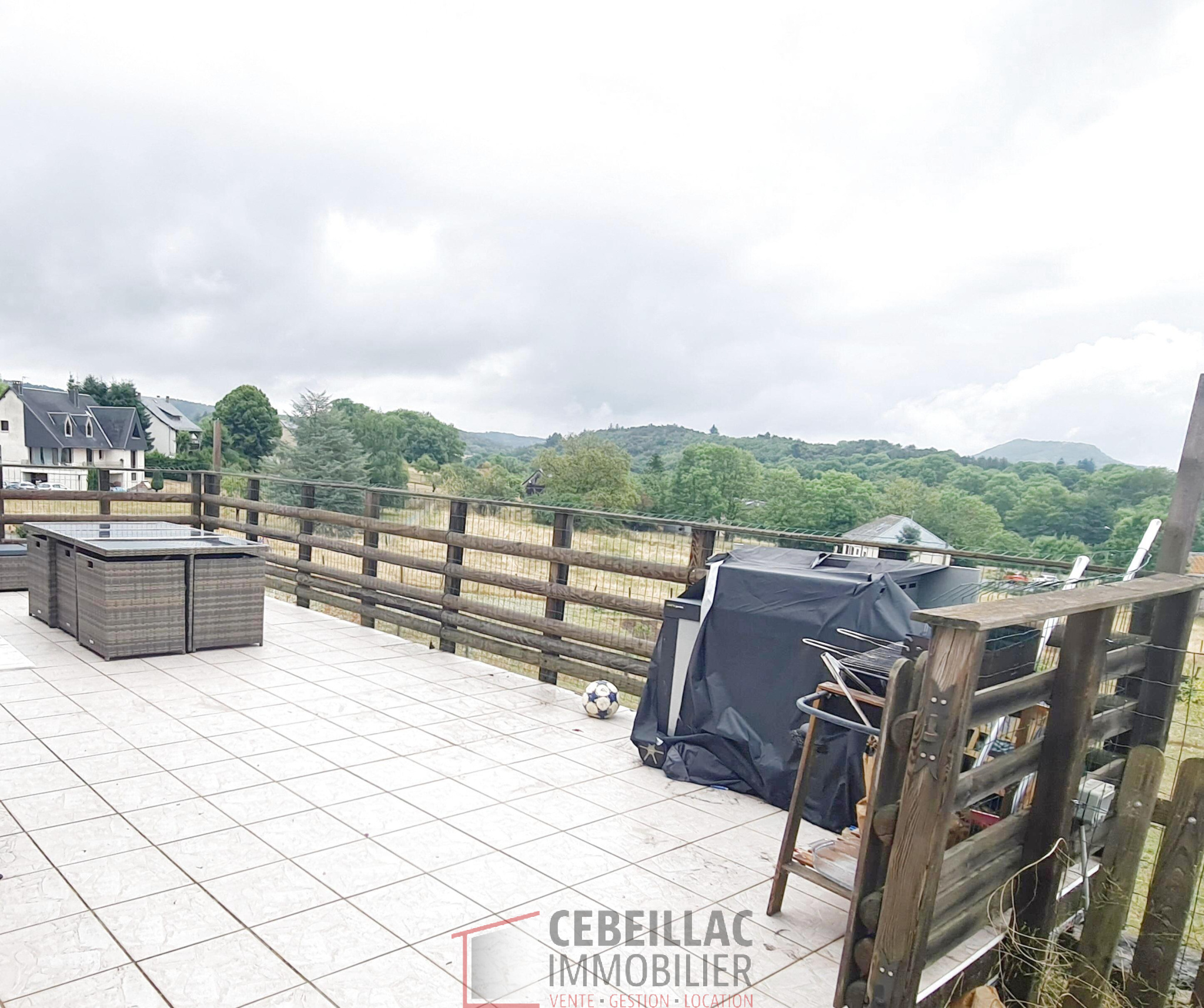 ...Elle dispose d'une grande terrasse extérieure et d'un vaste terrain clos de 2528m2 avec vues...