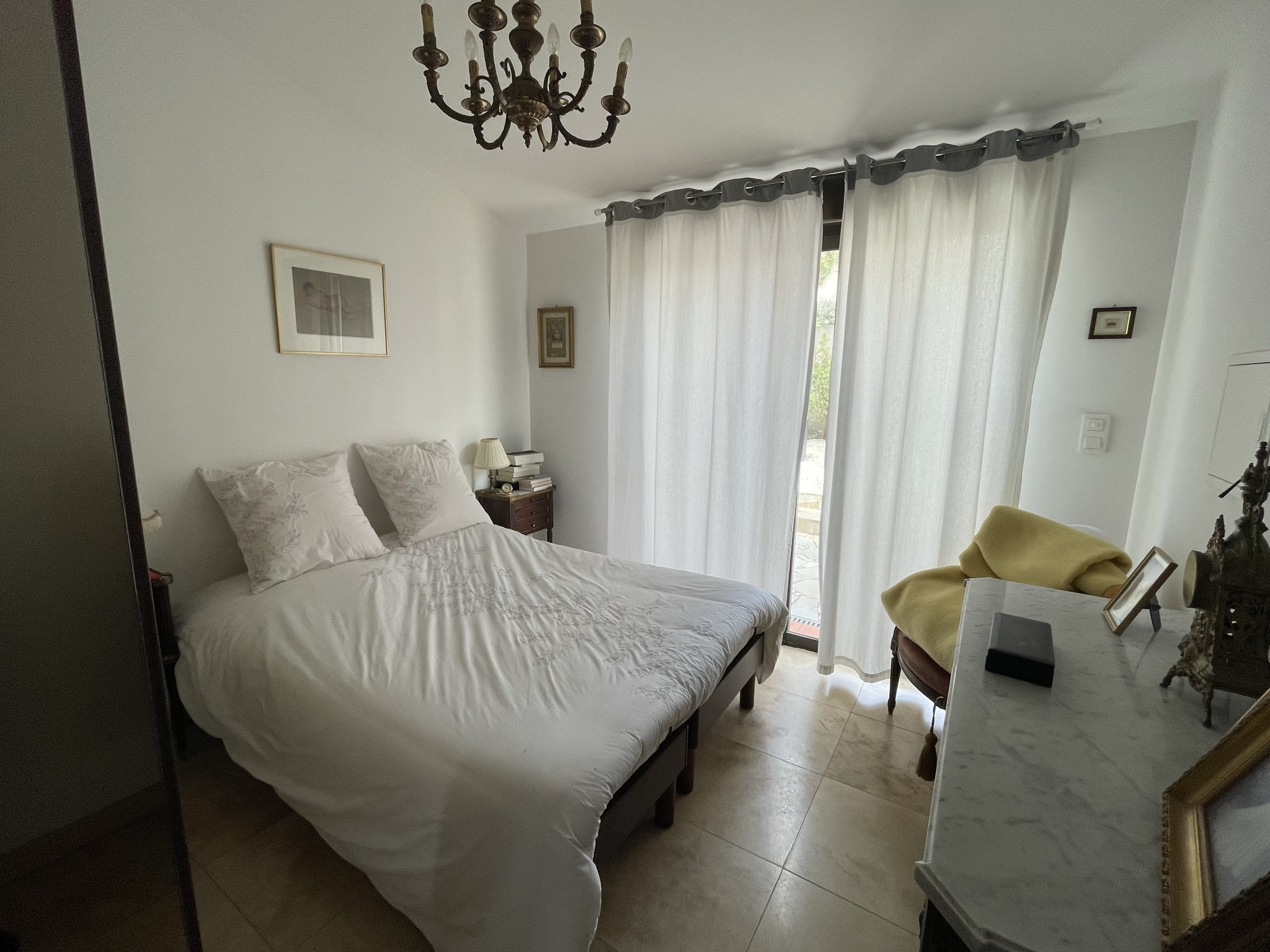 ... terrasse carrelé, arboré et clôturé, un garage motorisé , une place de parking privé .