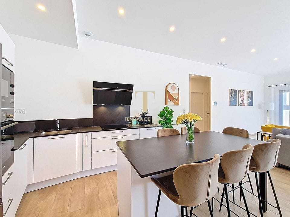 ... qu'une cuisine moderne entièrement aménagée et équipée avec îlot central.