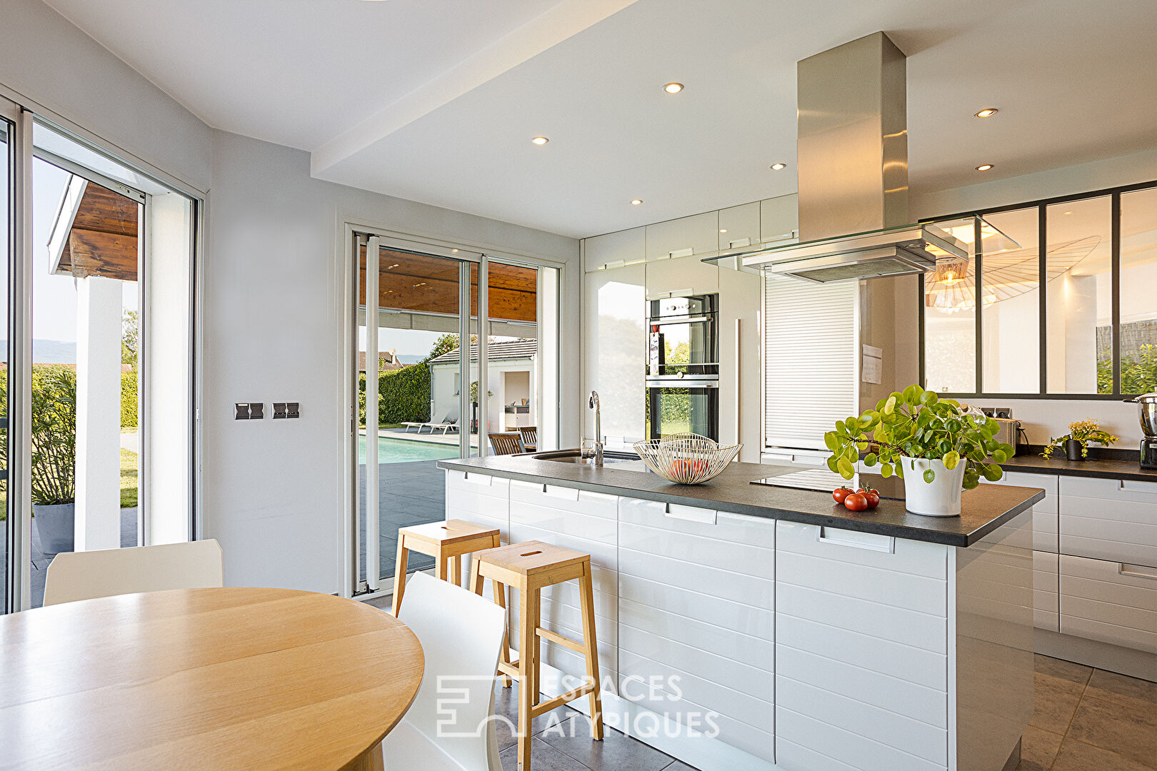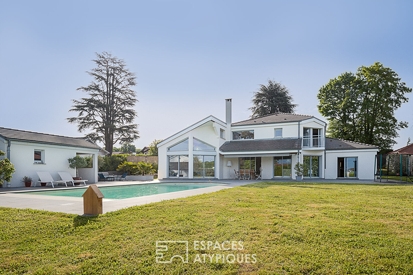 ...Édifiée sur un terrain paysager de 2 468 m², avec piscine et pool house, elle développe une...