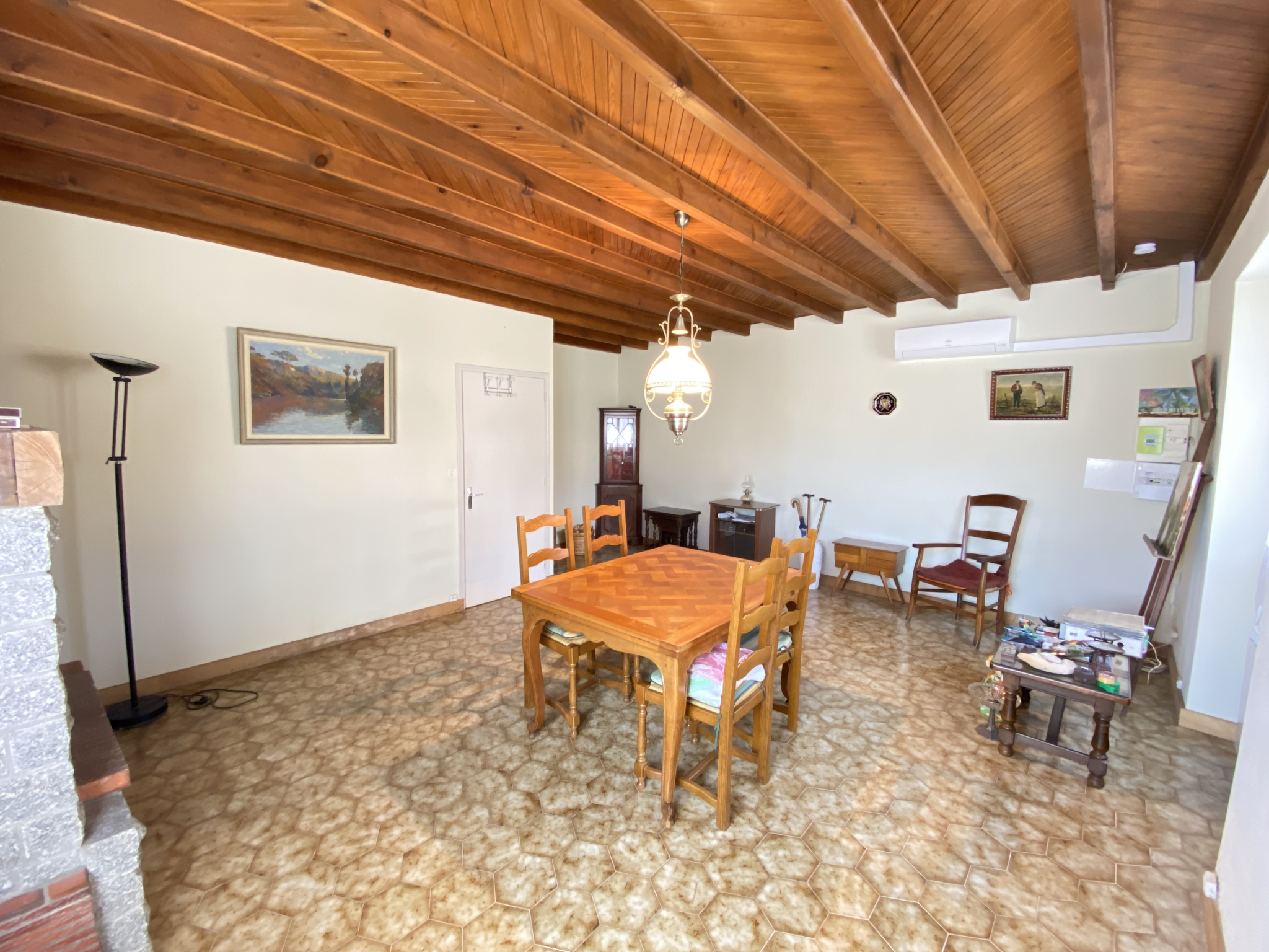 ...Au rez-de-chaussée, vous trouverez une belle pièce de vie équipée d'une cheminée à foyer ouvert,...