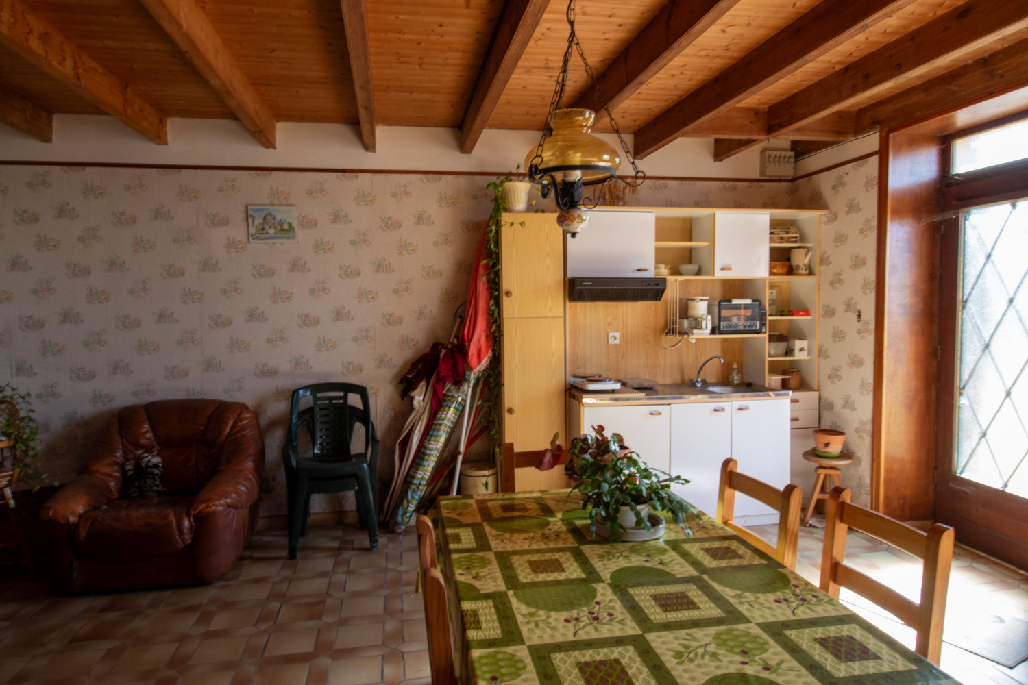 ...Une chambre donnant sur le jardin avec une salle de bains et un WC viennent compléter le...