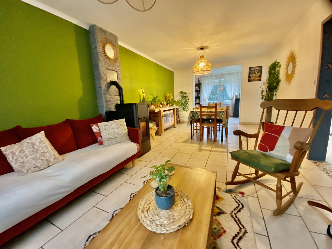 ...Au rez-de-chaussée, vous découvrirez un hall d'entrée, un séjour chaleureux équipé d'un poêle à...