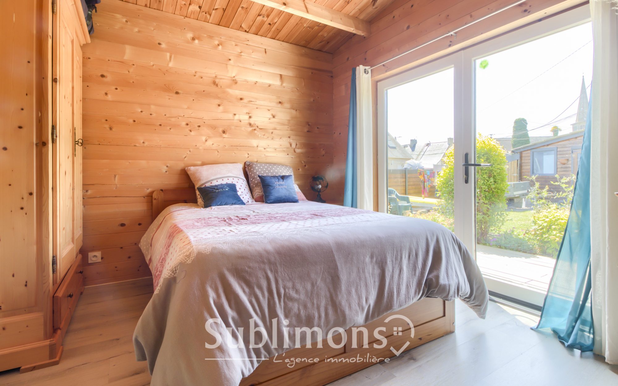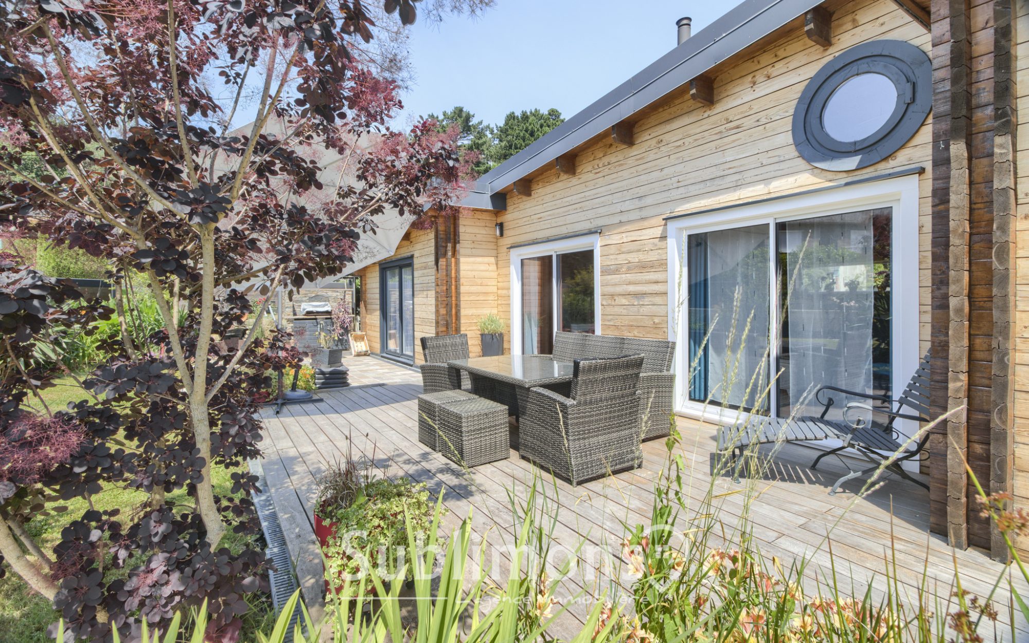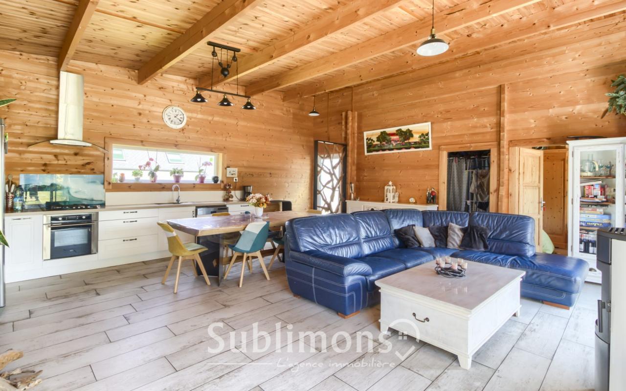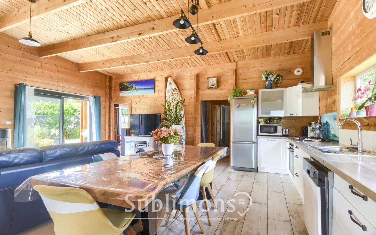 ...La pièce de vie, baignée de lumière, associe avec élégance le bois naturel et la modernité...