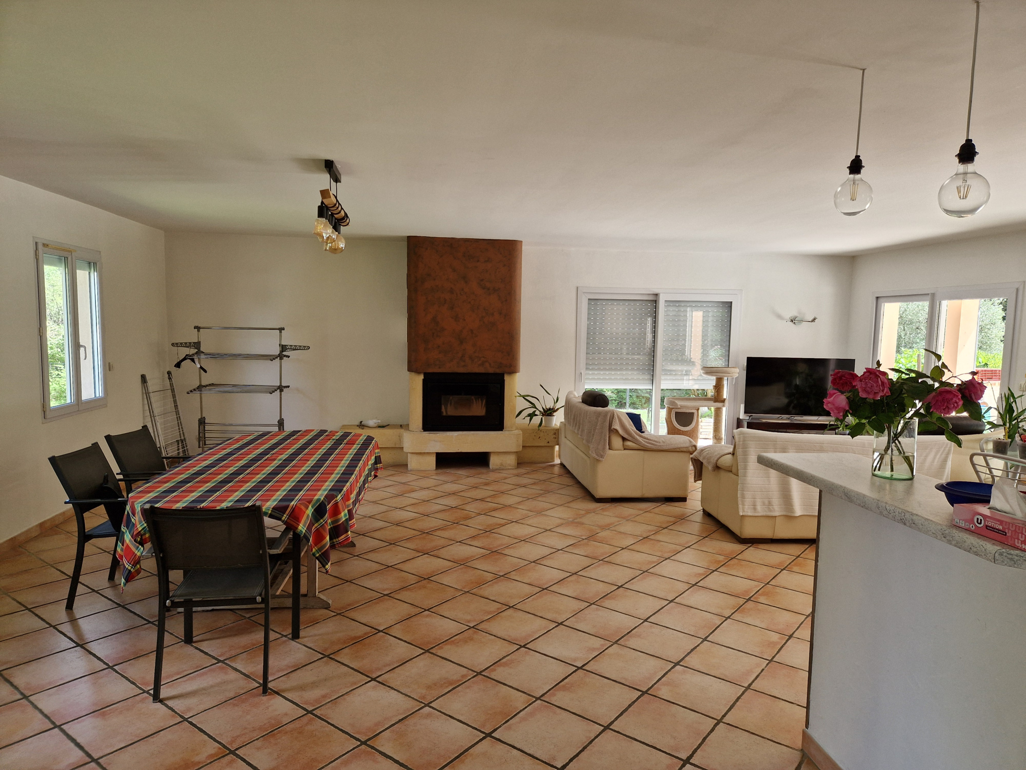 ...Au rez de chaussée, vous entrez dans une spacieuse pièce de vie avec cuisine équipée ouverte...