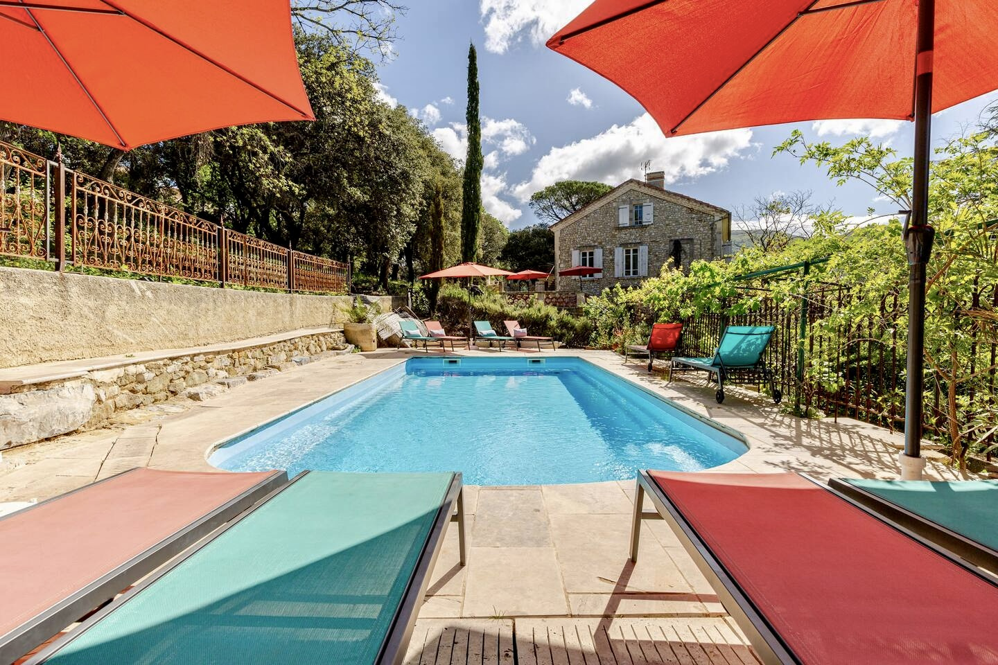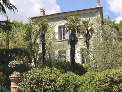 ...Vue spectaculaire, piscine (12x5m), oliveraie et jardin d'artiste avec fontaine, arbres...