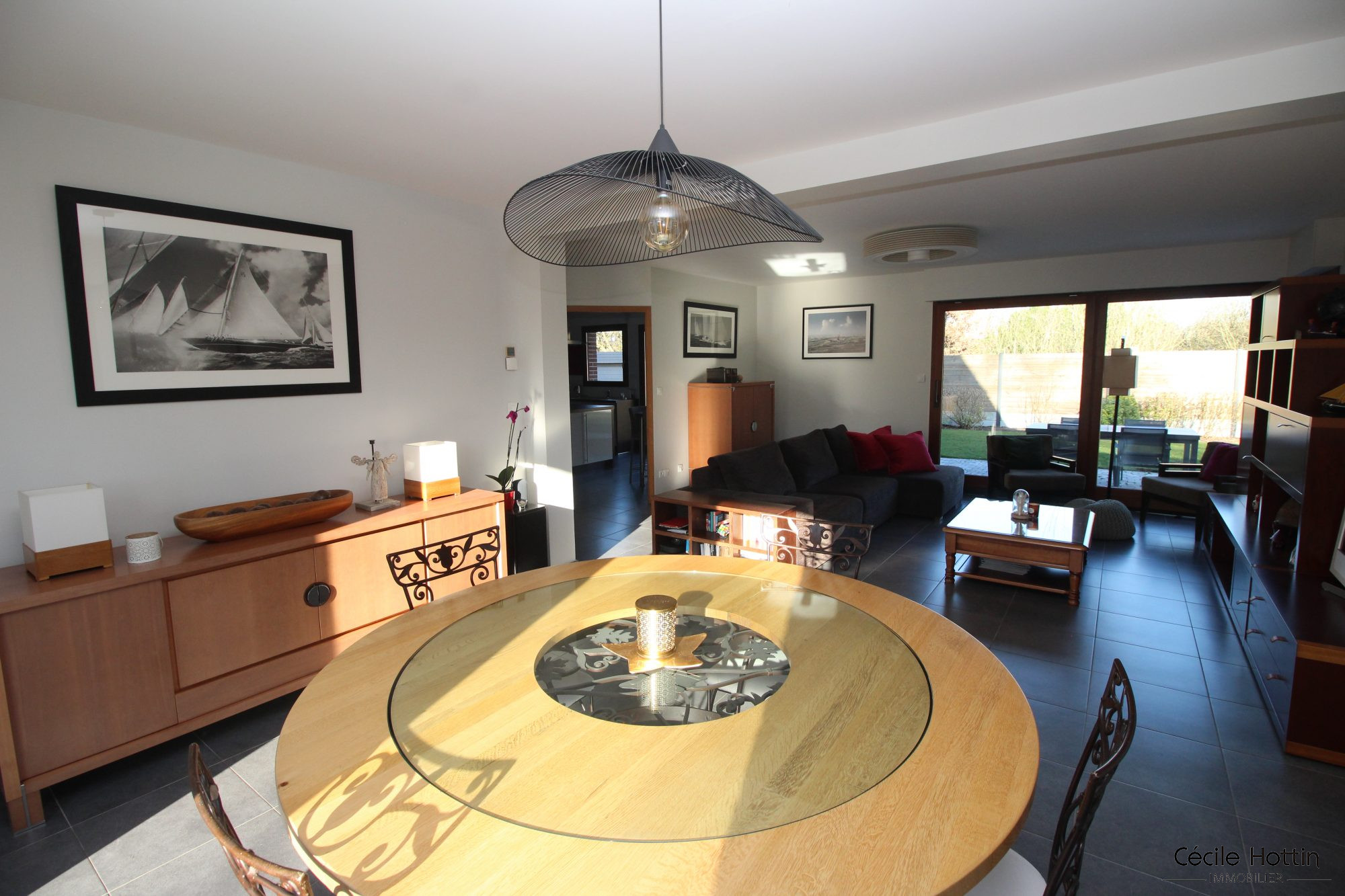 ...Belle arrivée avec un hall desservant une vaste pièce à vivre agrémentée de nombreuses baies...