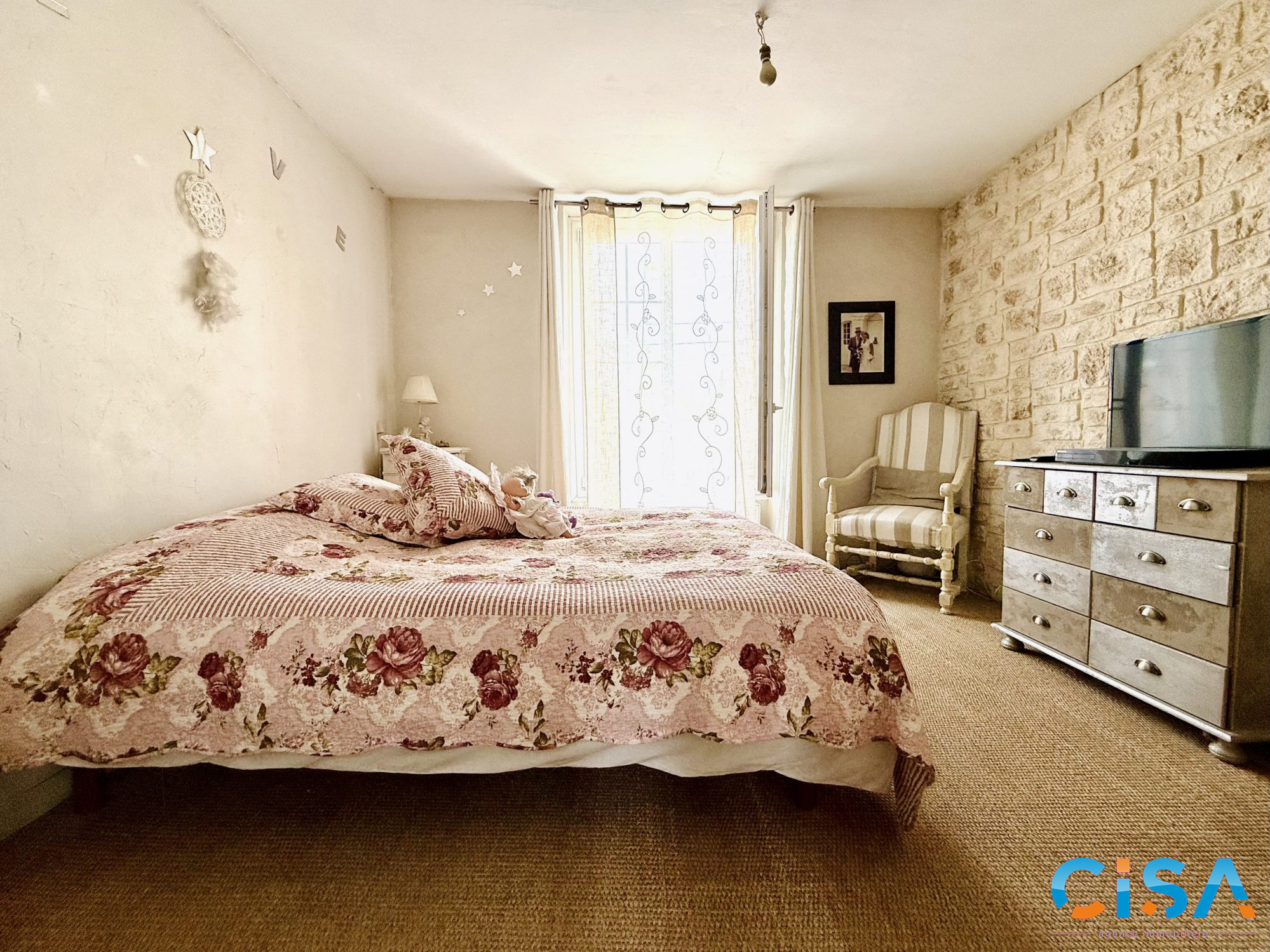 ... sous plafond, une cuisine équipée avec accès à une cave vouté et un WC indépendant.