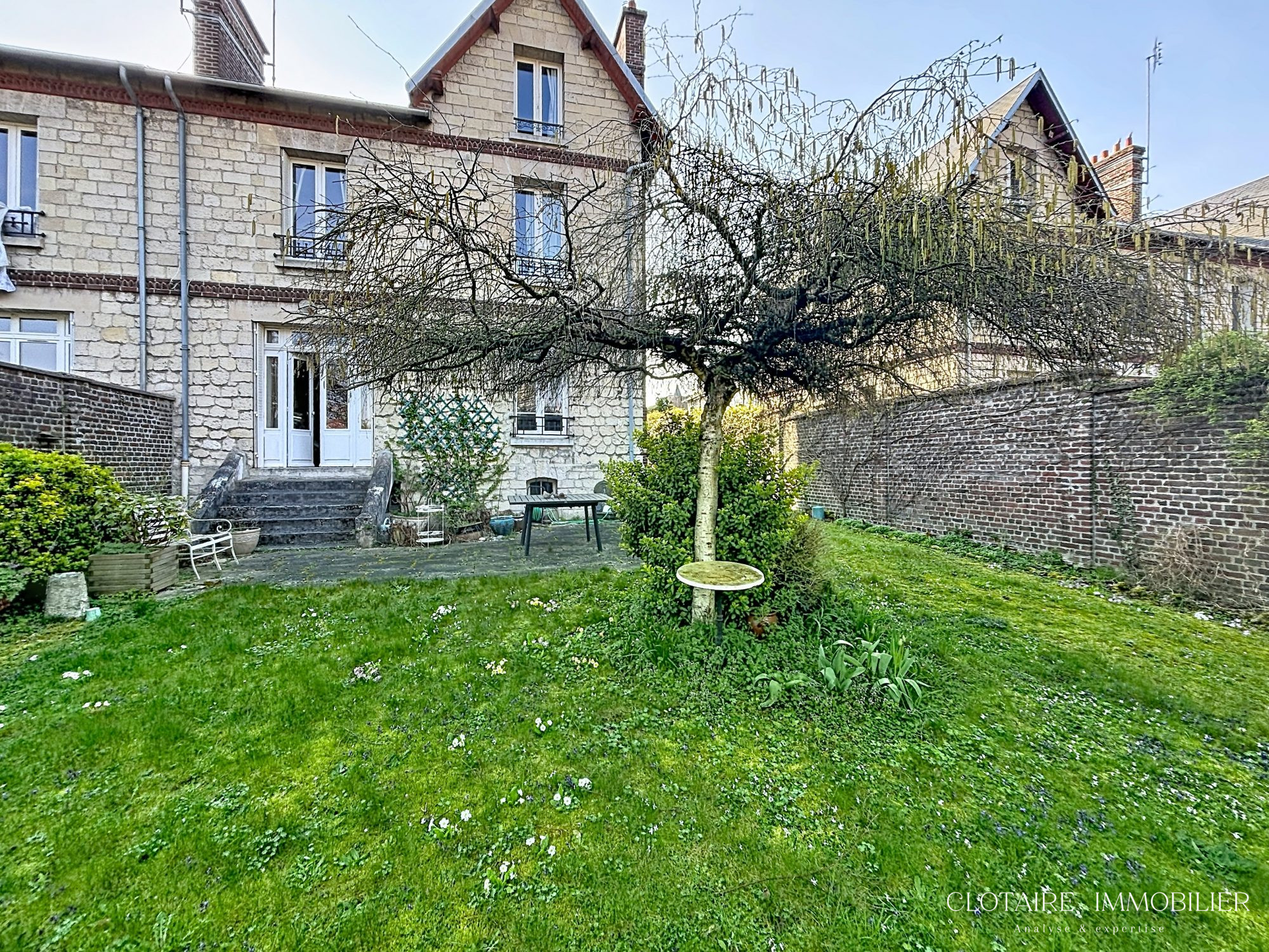 ...Entre la cour pavée et son jardin verdoyant exposé plein sud, chargée d'histoire, la demeure...