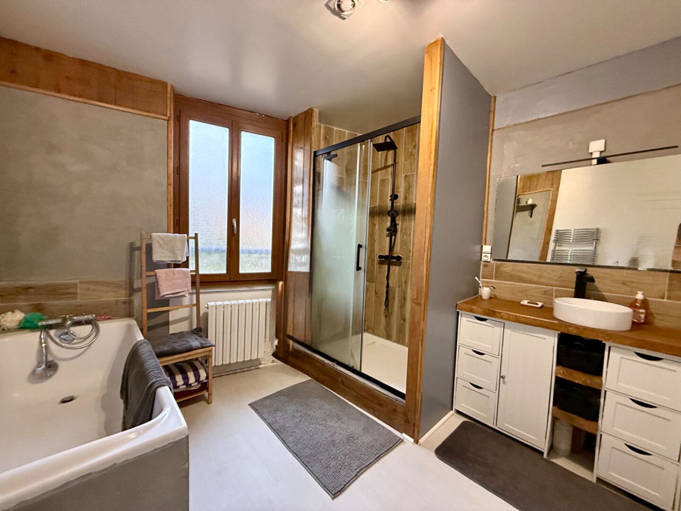 ...Une salle d'eau avec WC, une buanderie, une seconde pièce de vie lumineuse de plus de 43 m², deux...