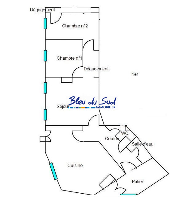 ...Au 1er étage : pièce de vie avec cuisine ouverte équipée, courette de 10 m2 permettant d'accéder...