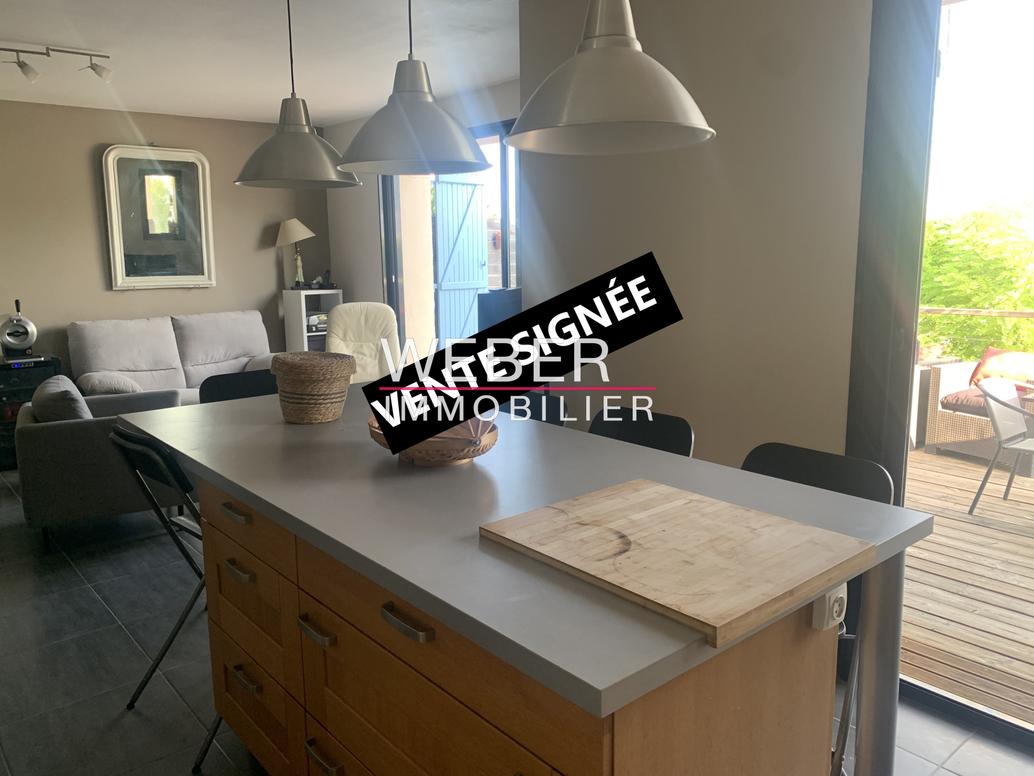 ... salon-séjour lumineux avec baies vitrées donnant sur une belle terrasse, cuisine séparée, 3 chambre...
