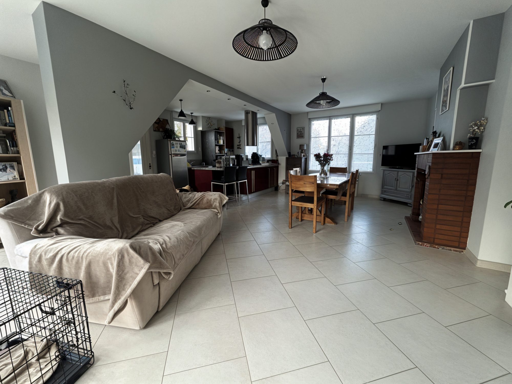 ...Elle se compose au rez-de-chaussée d'une entrée, d'une cuisine ouverte sur le salon avec insert...