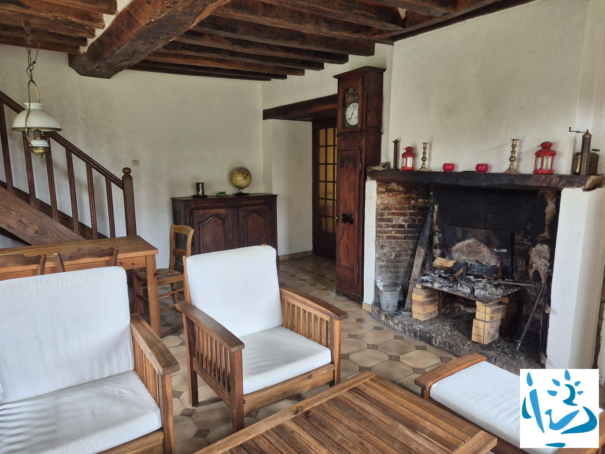 ...La maison offre au rez-de-chaussée: un séjour avec cheminée insert et poêle à granulés (17...