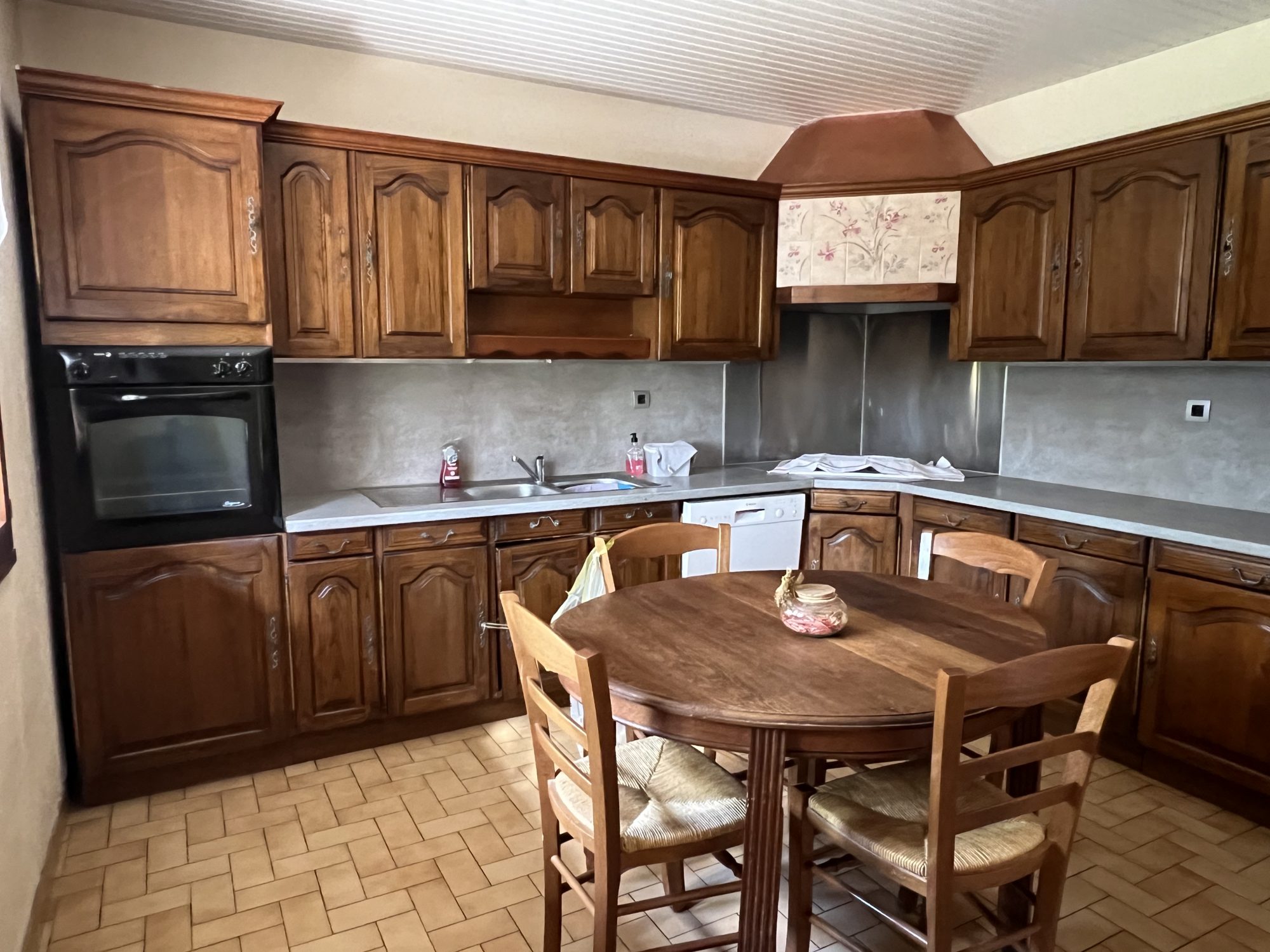 ...La cour goudronnée mène à la propriété de 87 m² avec sous-sol complet (garage, cave, atelier)...