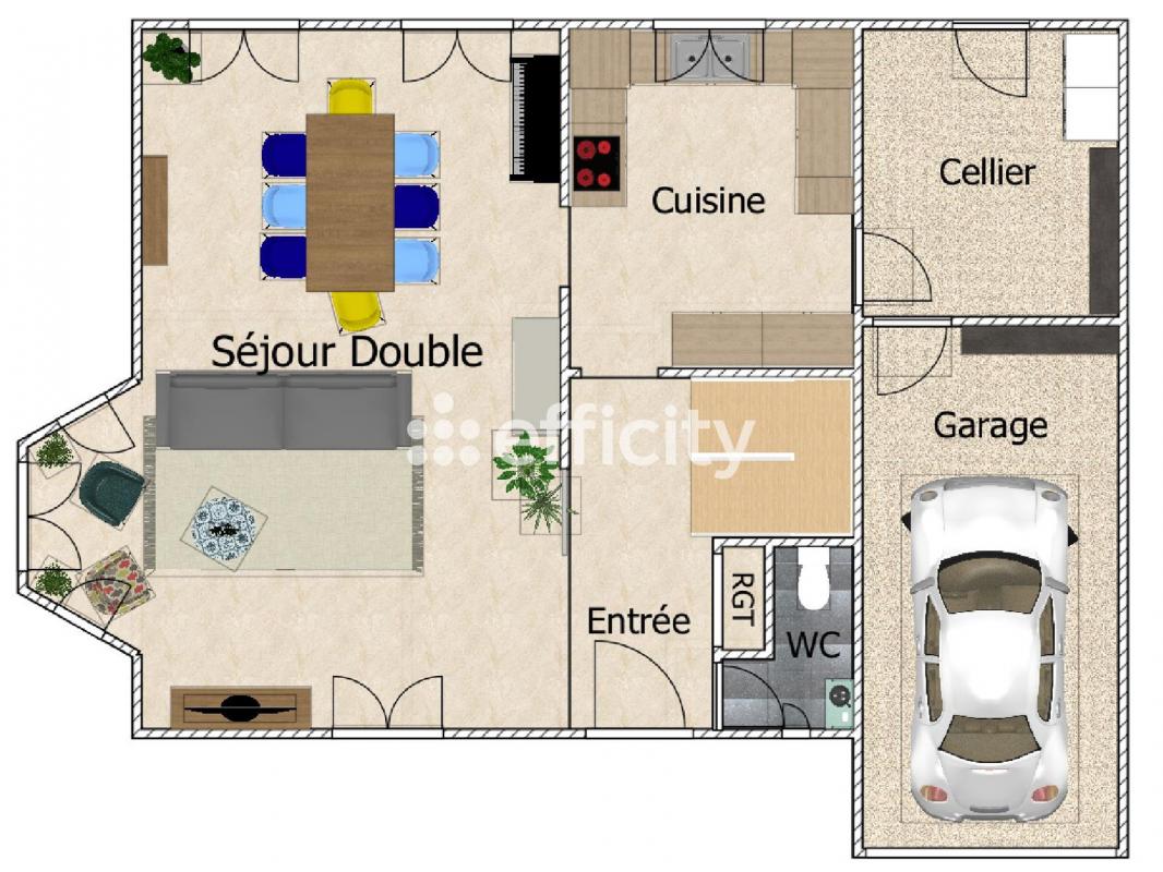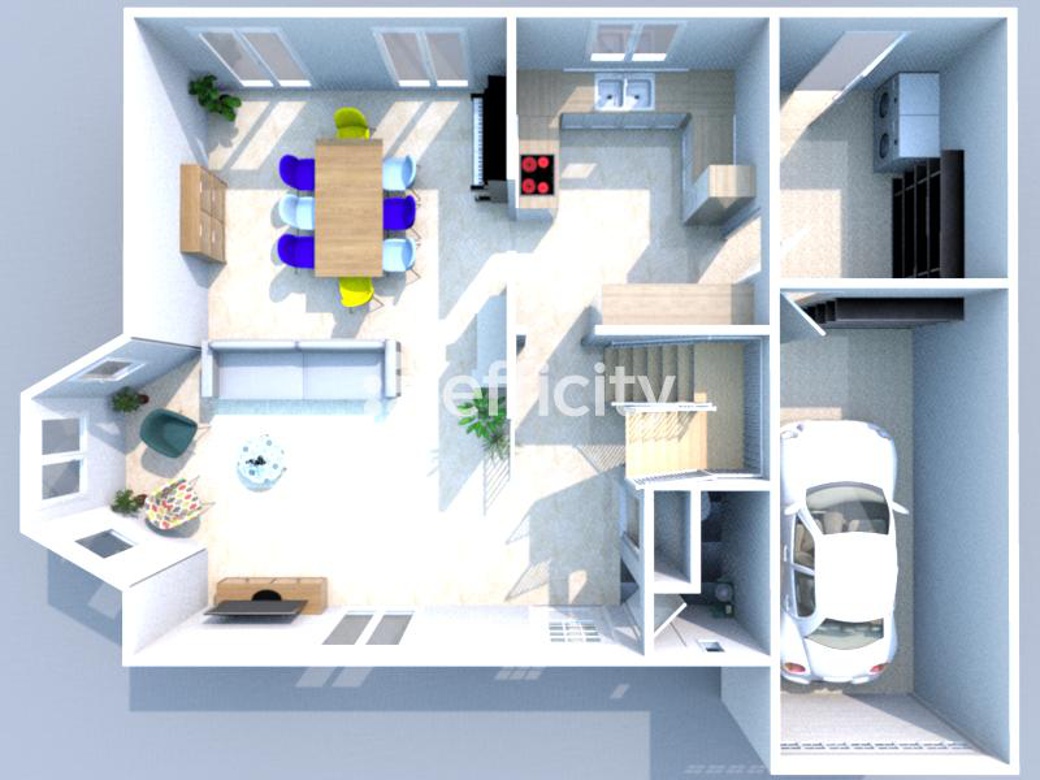...Elle se compose au rez-de-chaussée d'un double séjour lumineux de 27,85 m² donnant accès à une...