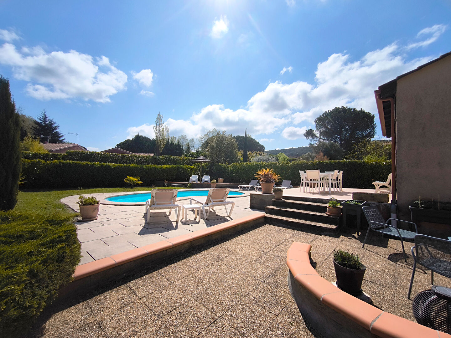 ...Vous y trouverez une piscine au sel de 8 x 4 m, une cuisine d'été de 30 m² équipée avec barbecue...