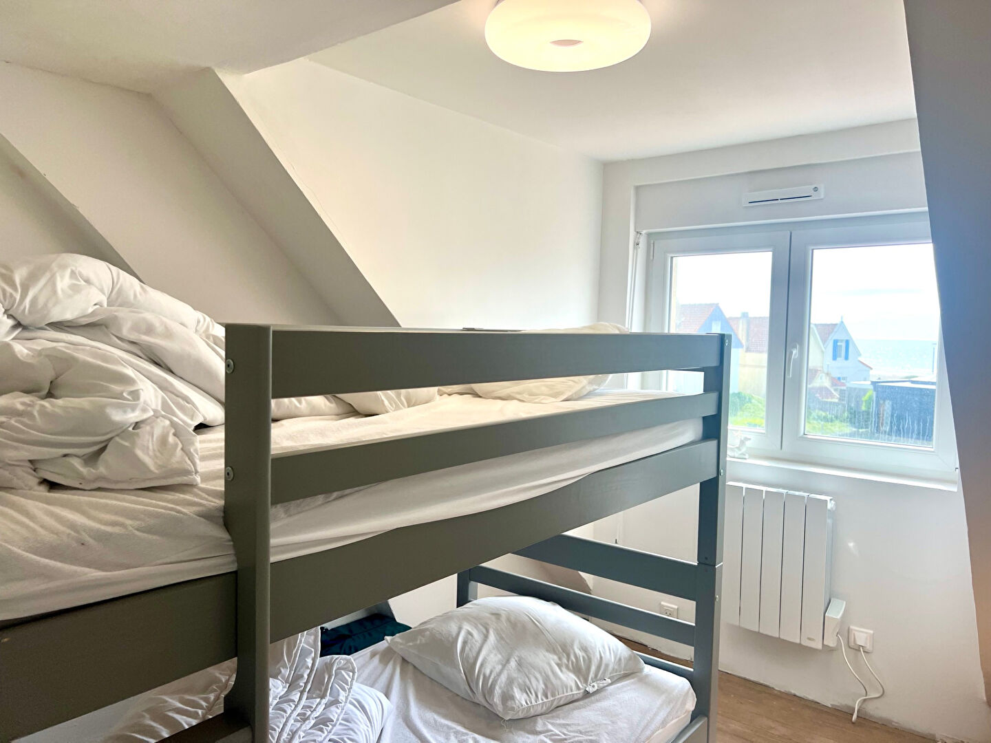 ...A l'étage: une grande mezzanine ( bureau ou chambre d'amis), deux chambres, une salle de bains...
