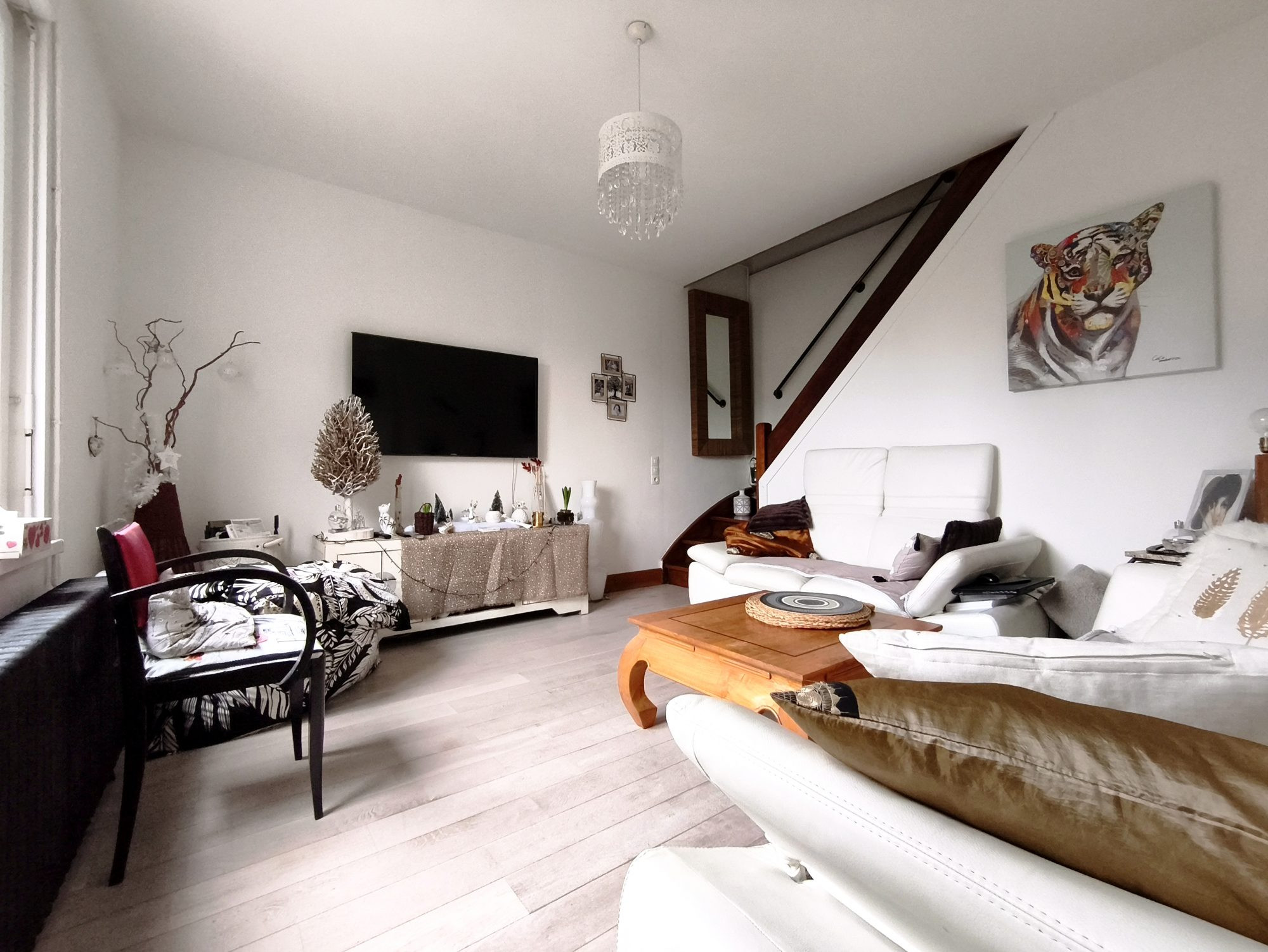 ...Au rez de chaussée :Salon / Salle à Manger avec Cuisine ouverte, salle de bains et toilettes...