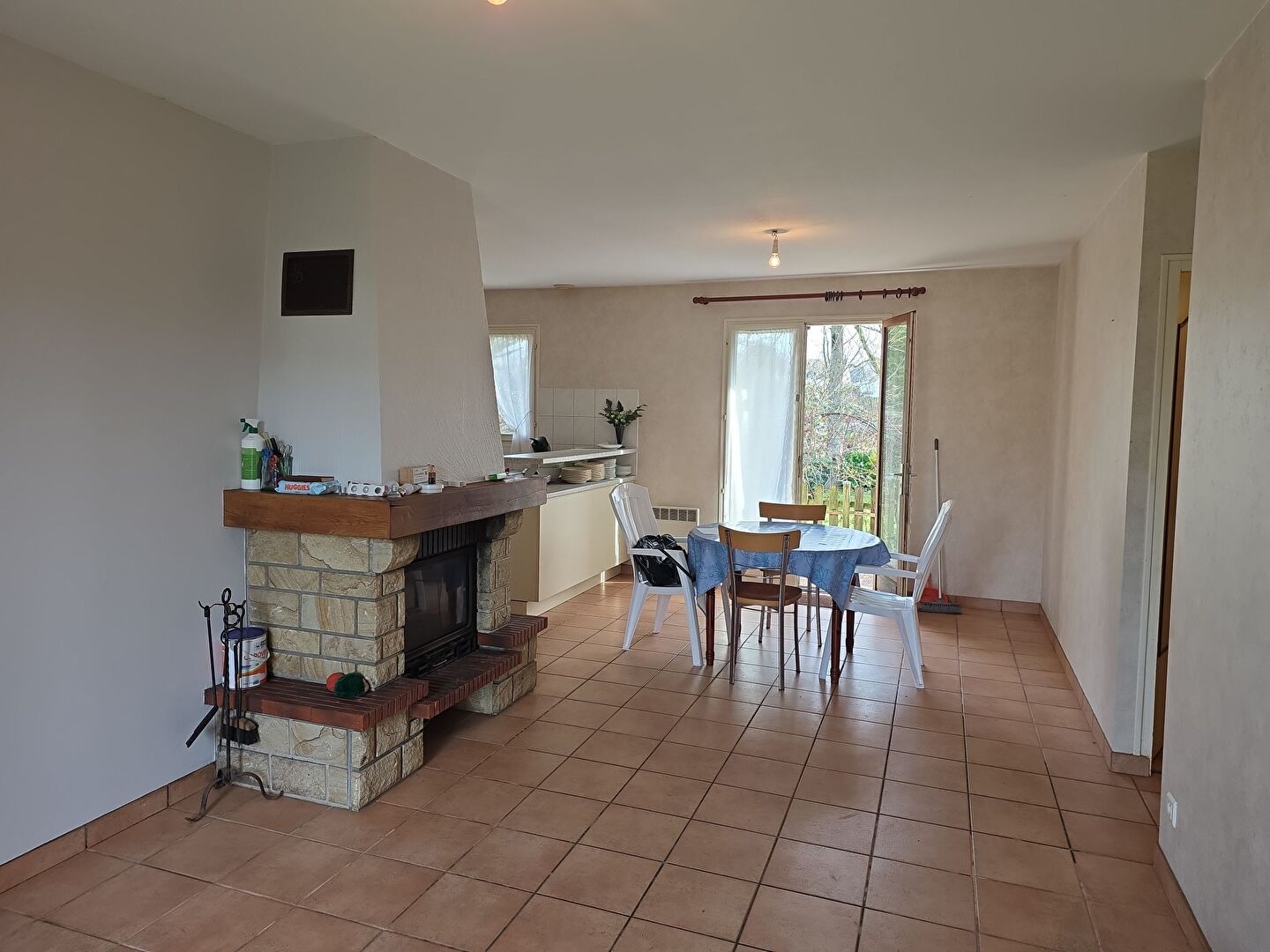 ...Elle comprend au rdc une pièce de vie avec cheminée, une cuisine ouverte aménagée, 2 chambres,...