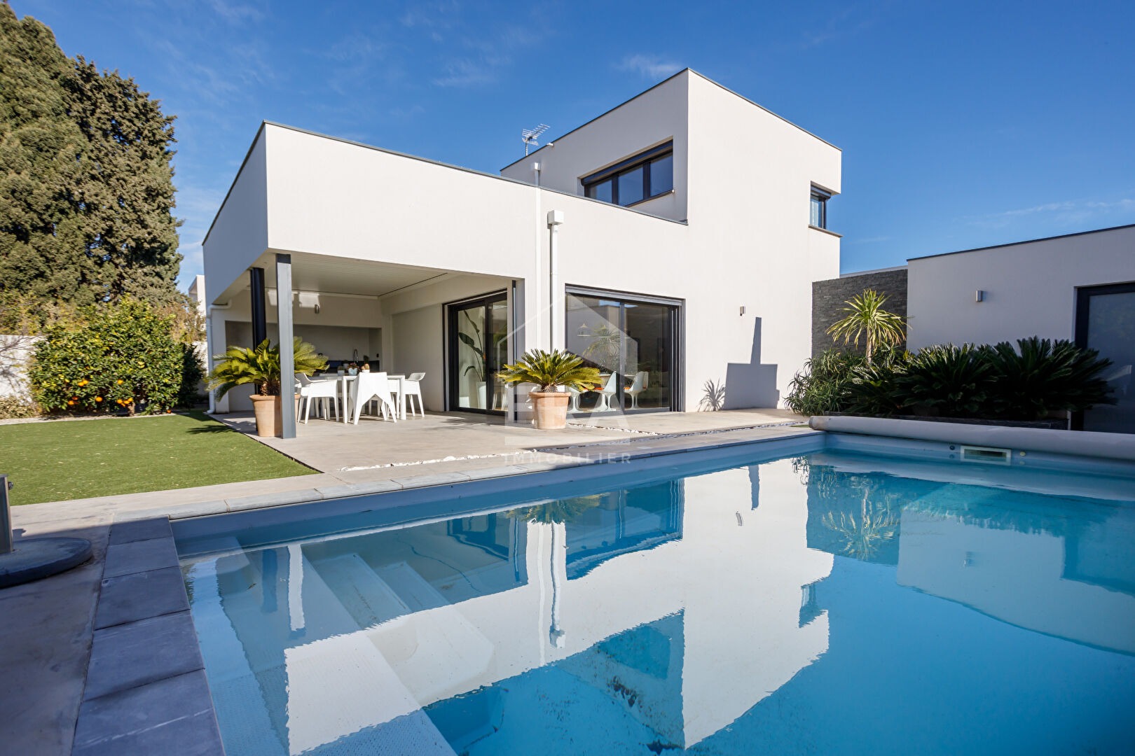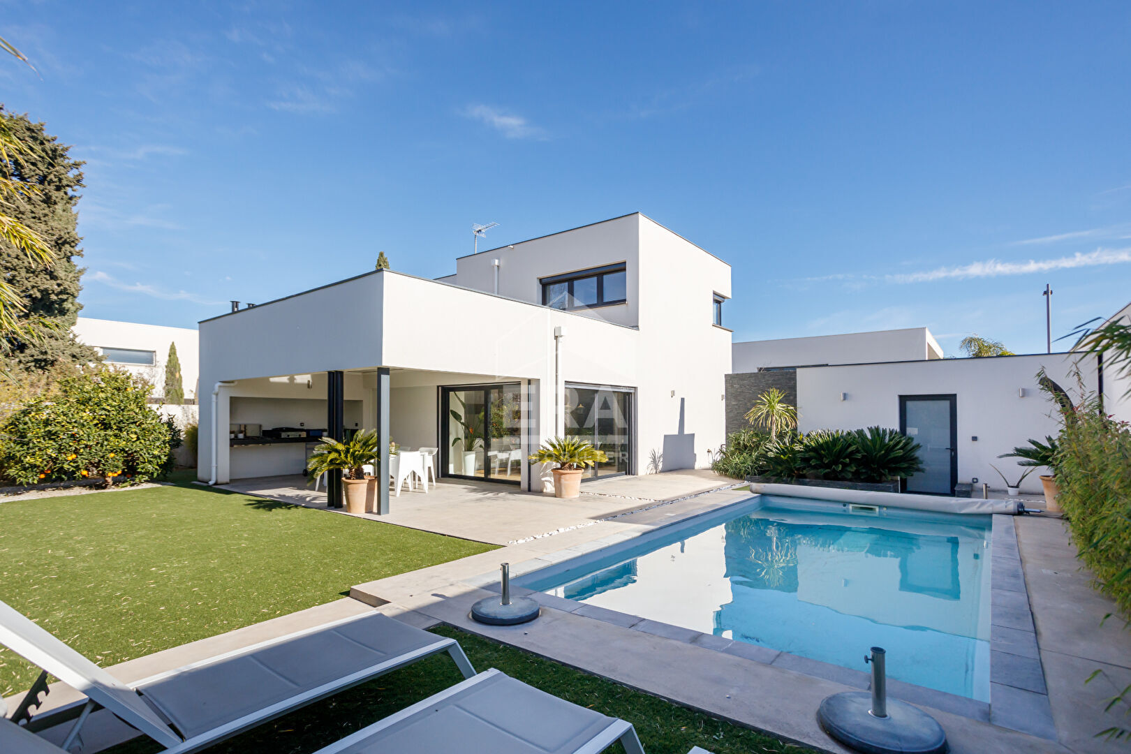 ... m), une pergola bioclimatique, un carport pouvant accueillir 2 véhicules et un portail motorisé.