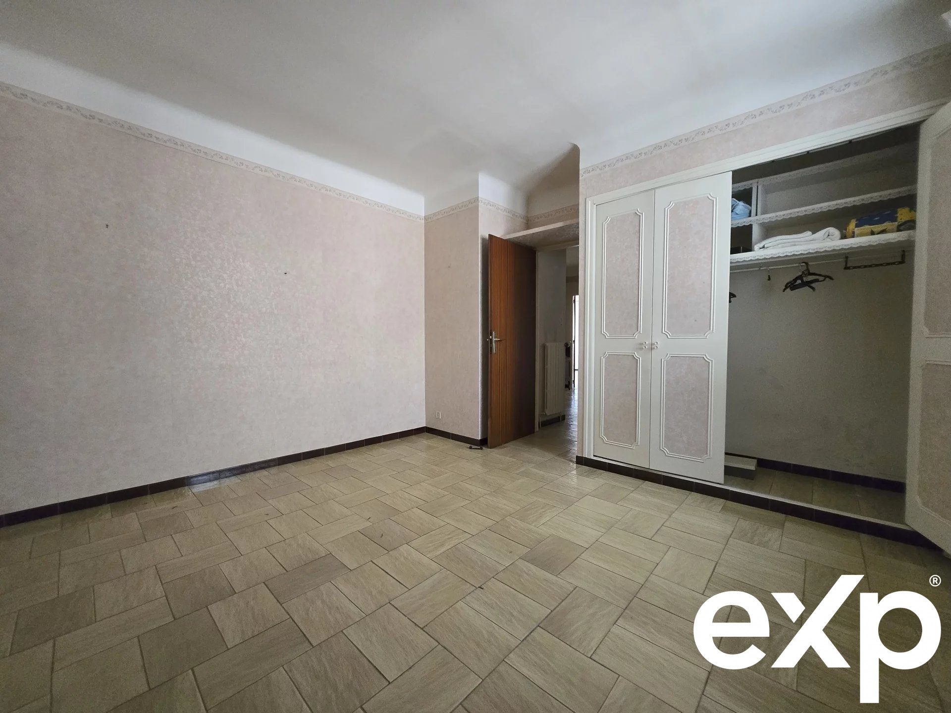 ...Elle offre un séjour lumineux avec cuisine ouverte, deux chambres équipées de quatre placards...