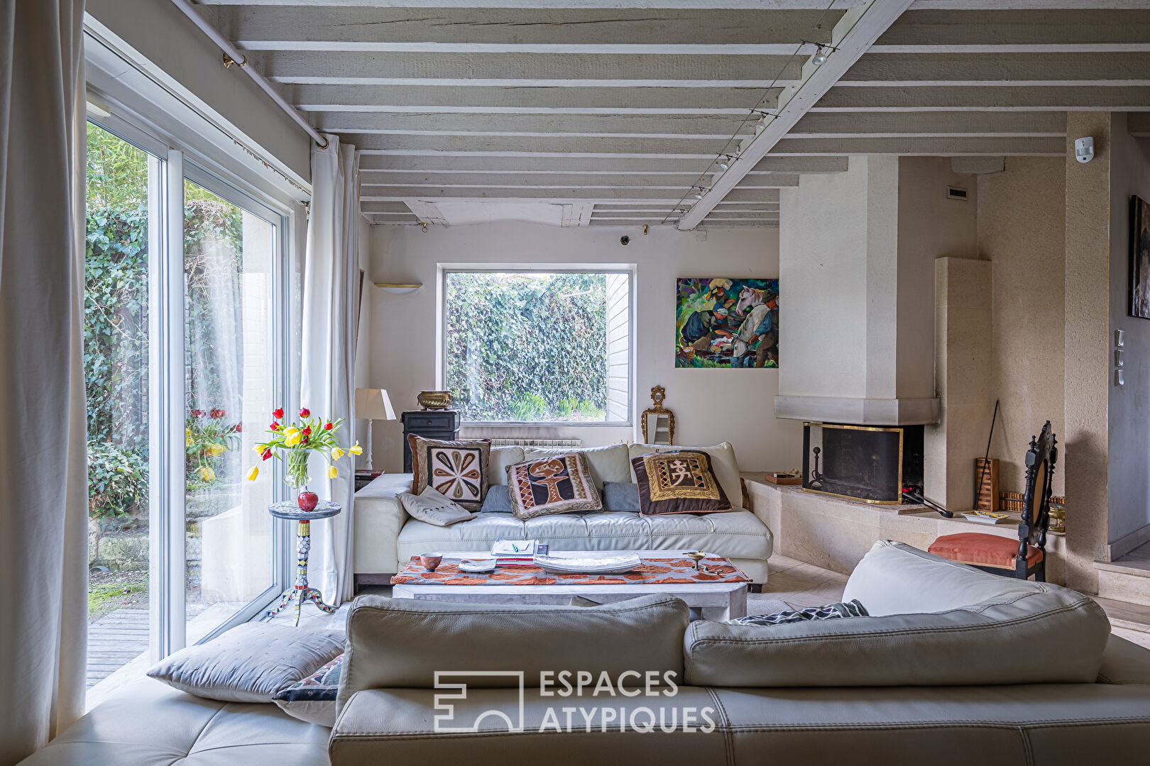 ...Au rez-de-chaussée, l'espace de vie se compose d'un séjour, de deux cuisines, d'une véranda...