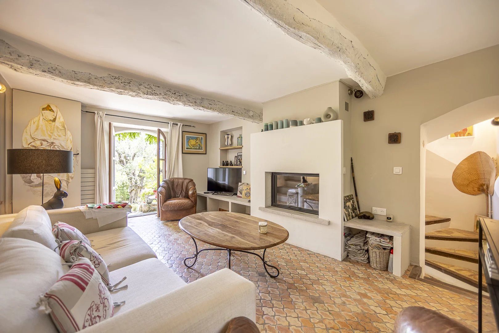 ...Au rez-de-jardin : entrée, véranda, beau séjour avec cheminée à insert, cuisine ouverte aménagée...