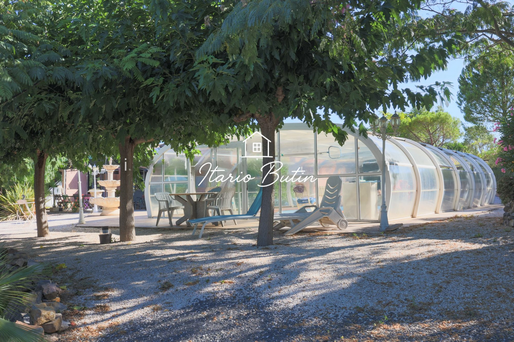 ... jardin clôturé et arboré de 3547 m² avec puit. Sur cette parcelle une impressionnante piscine couve...