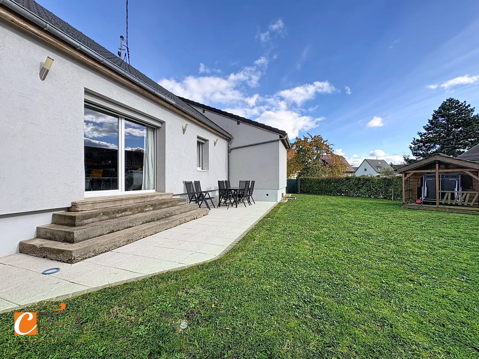 ... Pfastatt, cette maison individuelle de plain-pied a été entièrement rénovée et agrandie en 2016. El...